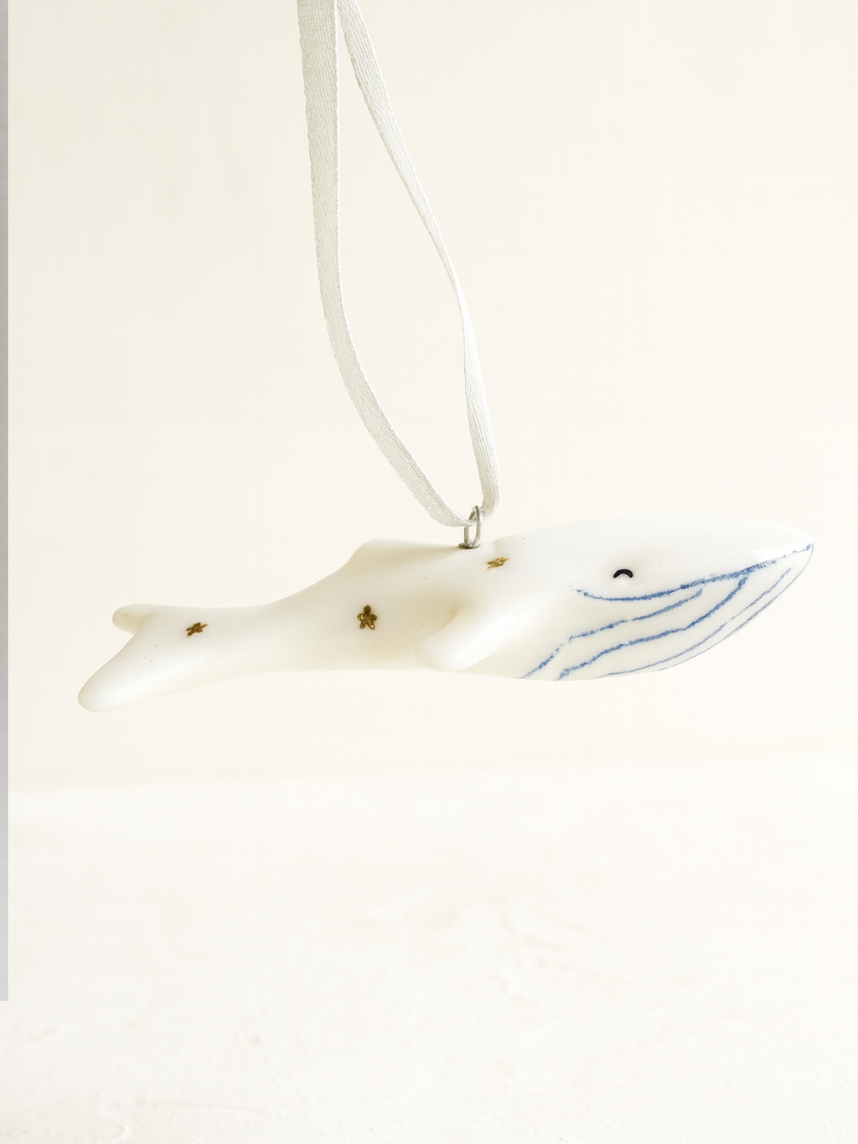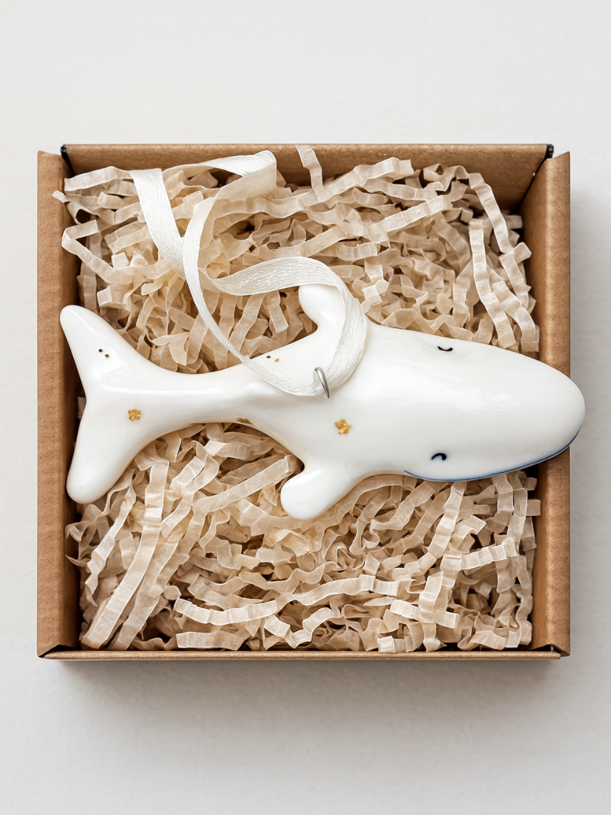 Елочная игрушка "Кит" сделана из фарфора и станет чудесным подарком близкому человеку.