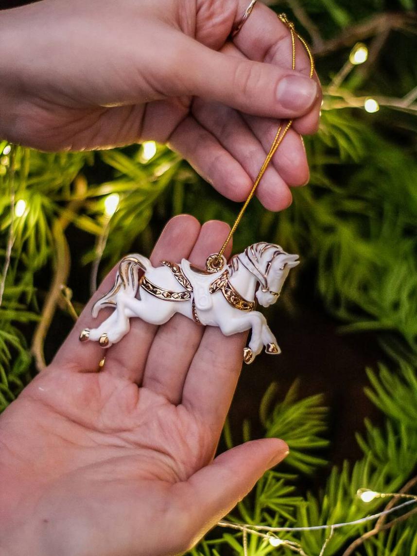 Игрушка новогодняя фарфоровая «Лошадка» бело-золотого цвета.