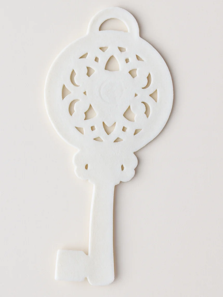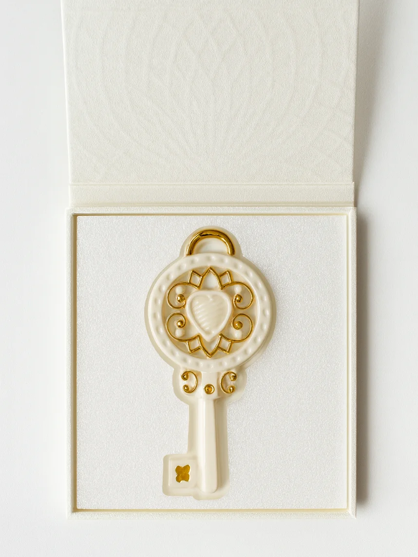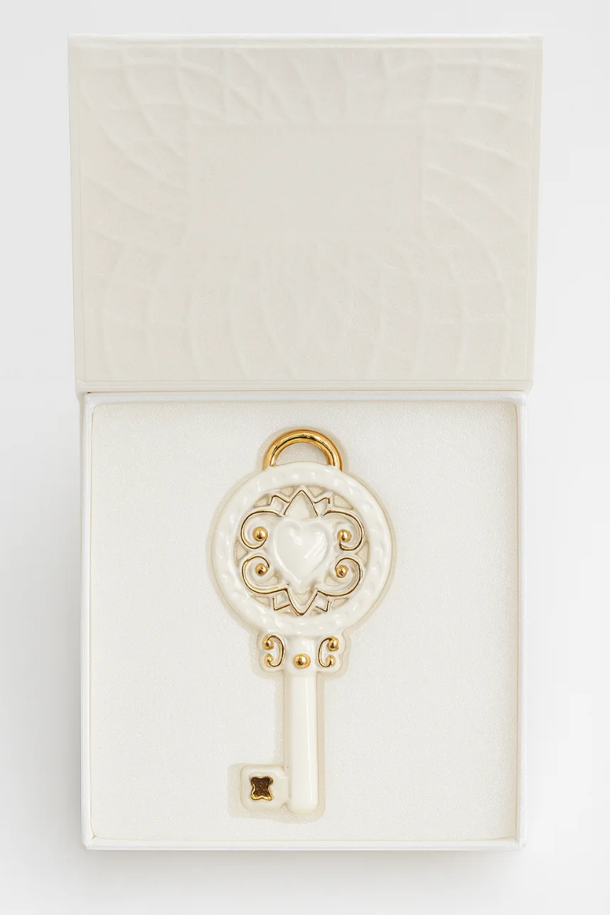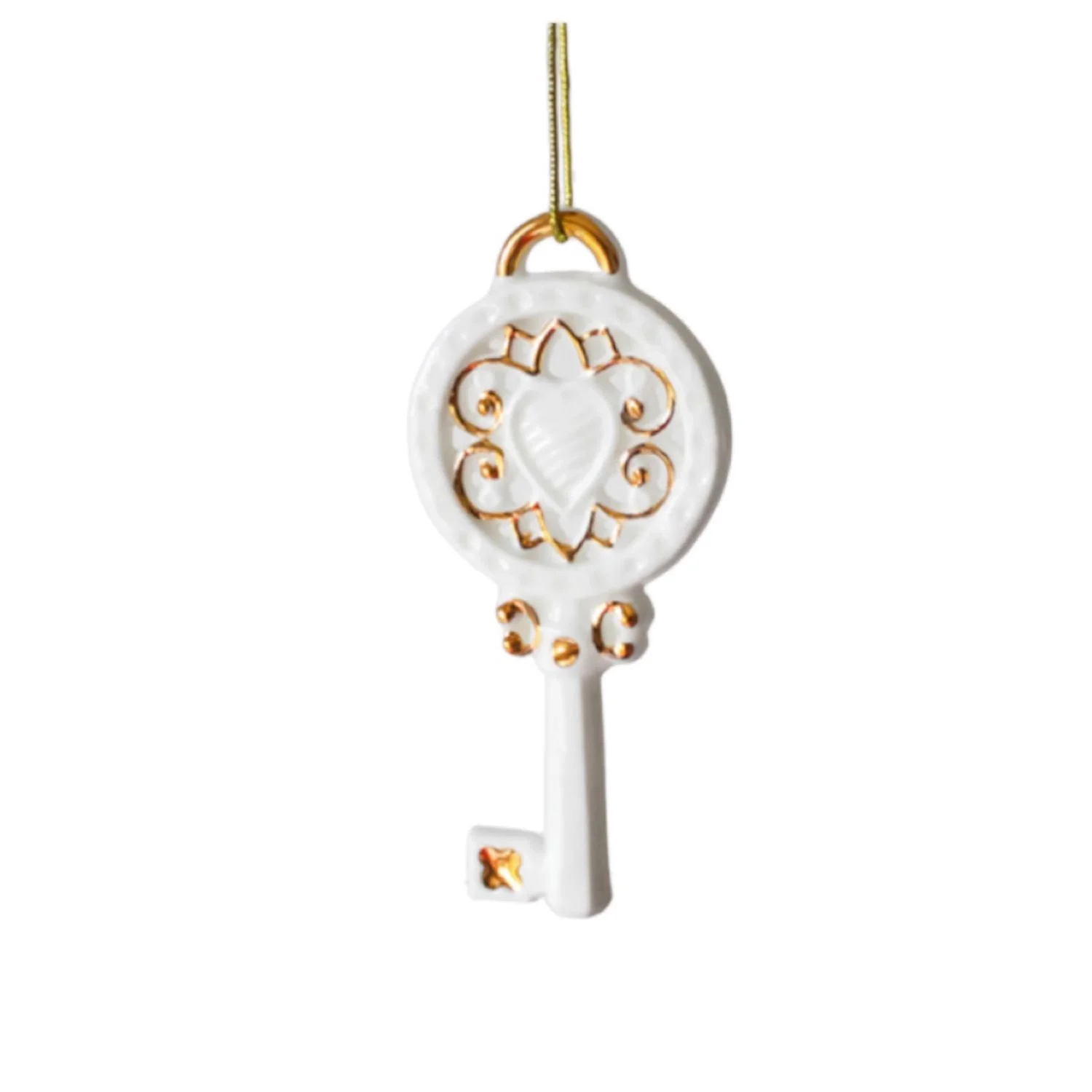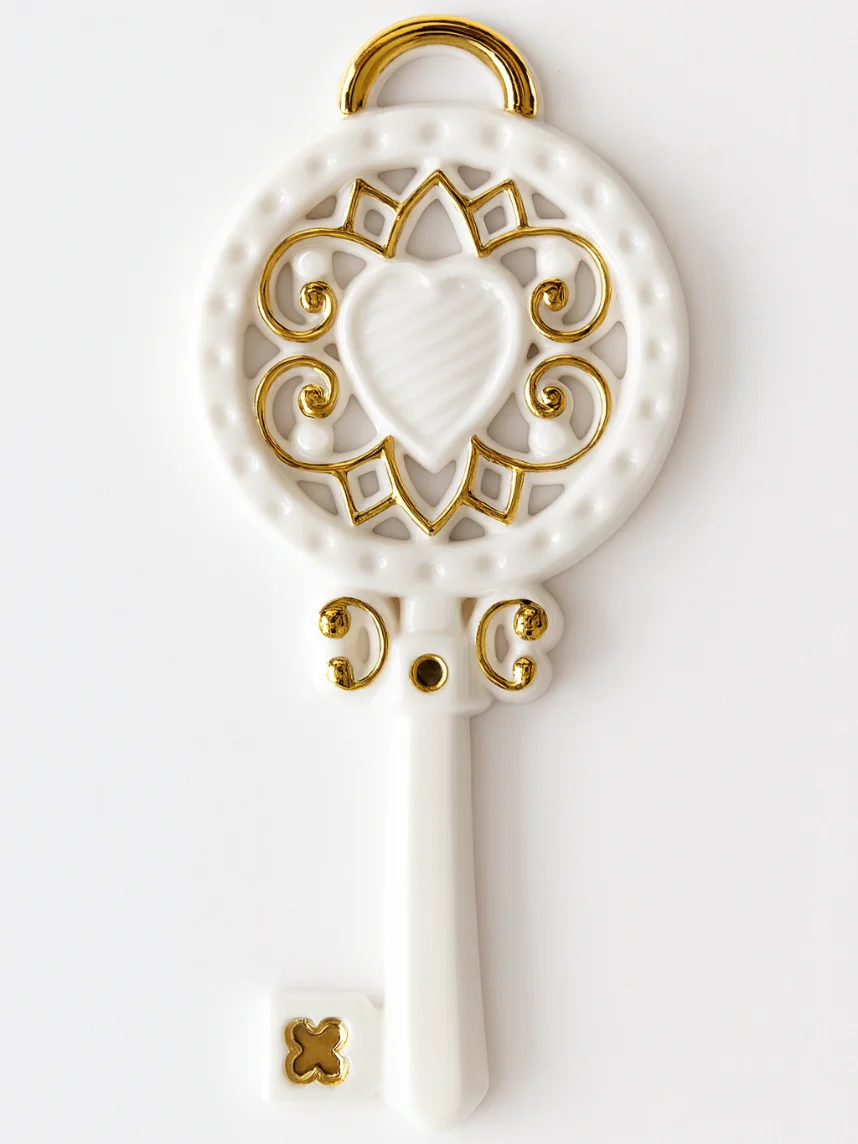 Игрушка новогодняя фарфоровая «Ключик» бело-золотого цвета.