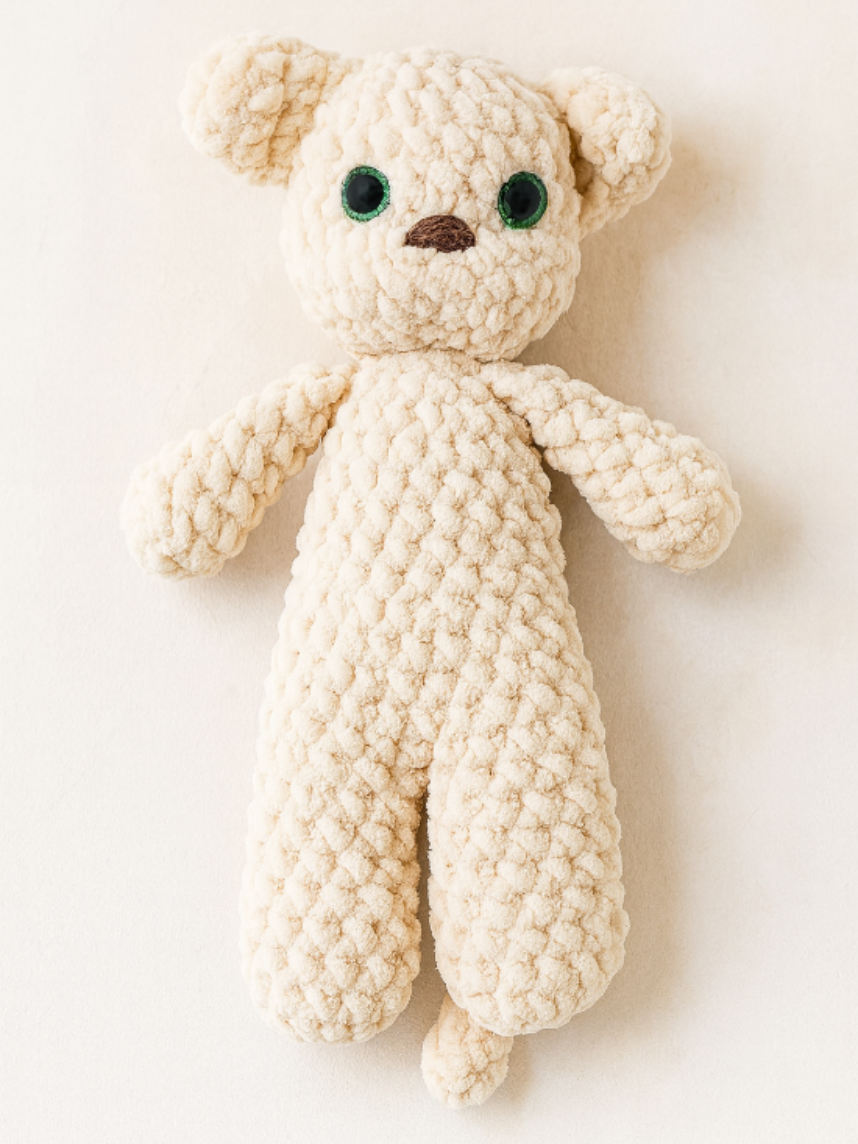 Эстетичная плюшевая игрушка, выполненная из нежной мягкой пряжи, станет отличным подарком.