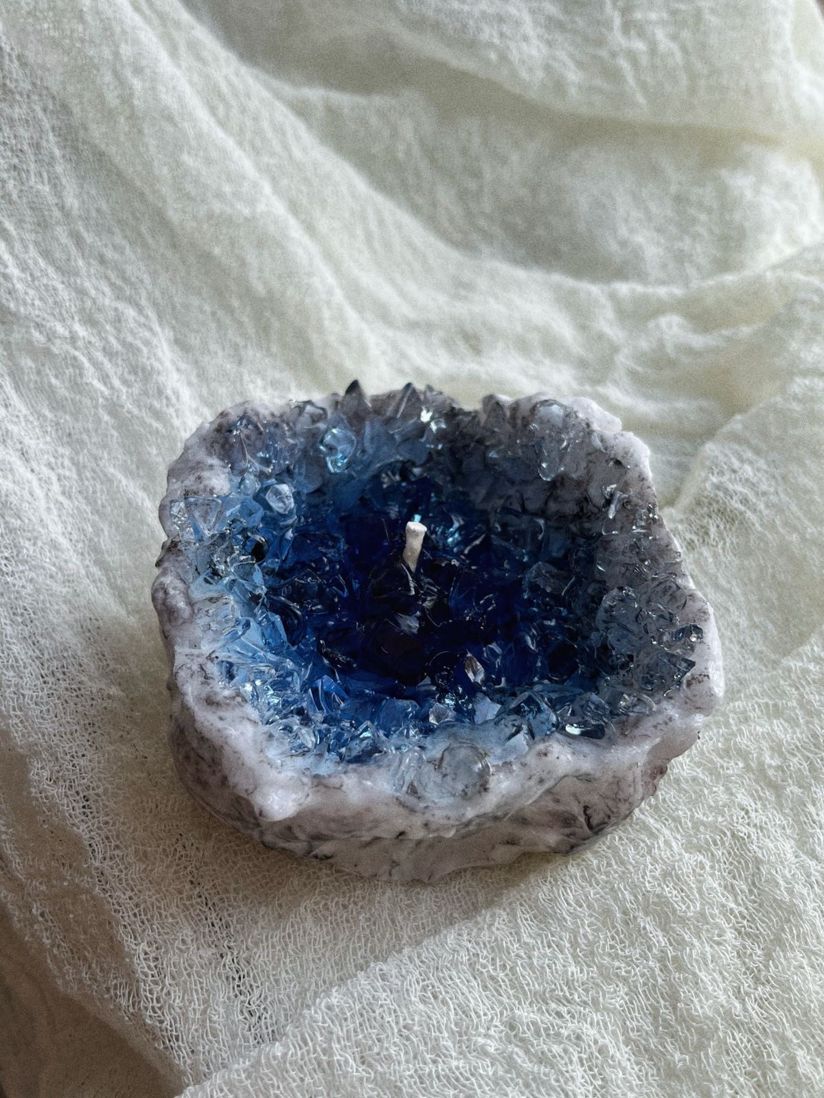 Интерьерная свеча «Кристалл» синего цвета — это элегантный и загадочный декоративный элемент, выполненный в форме кристалла или драгоценного камня.