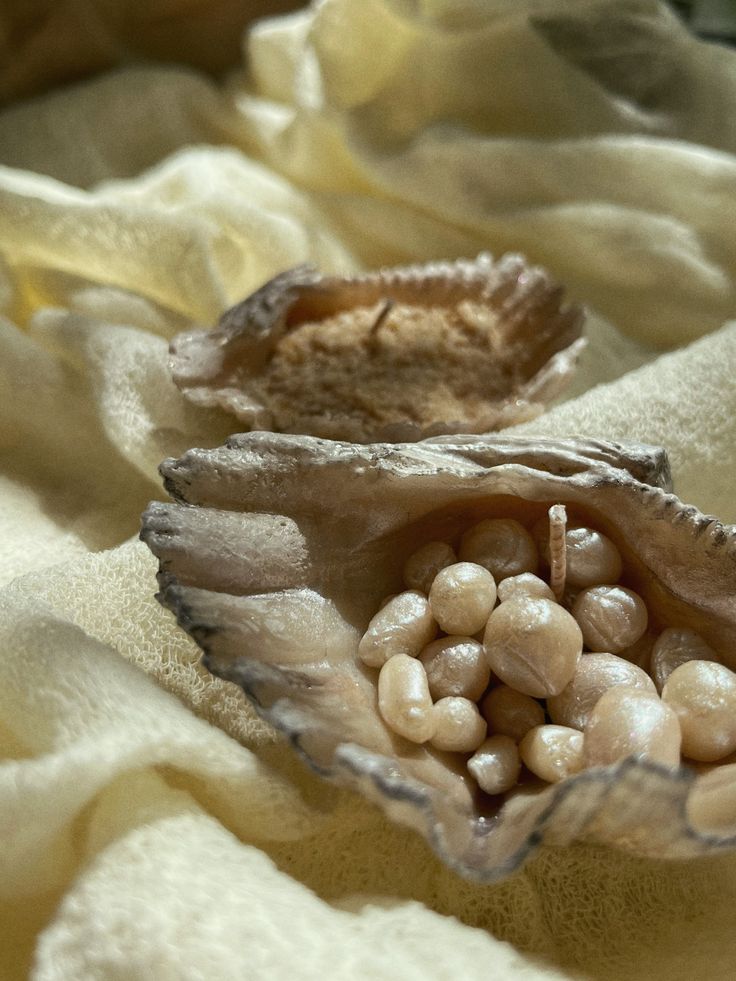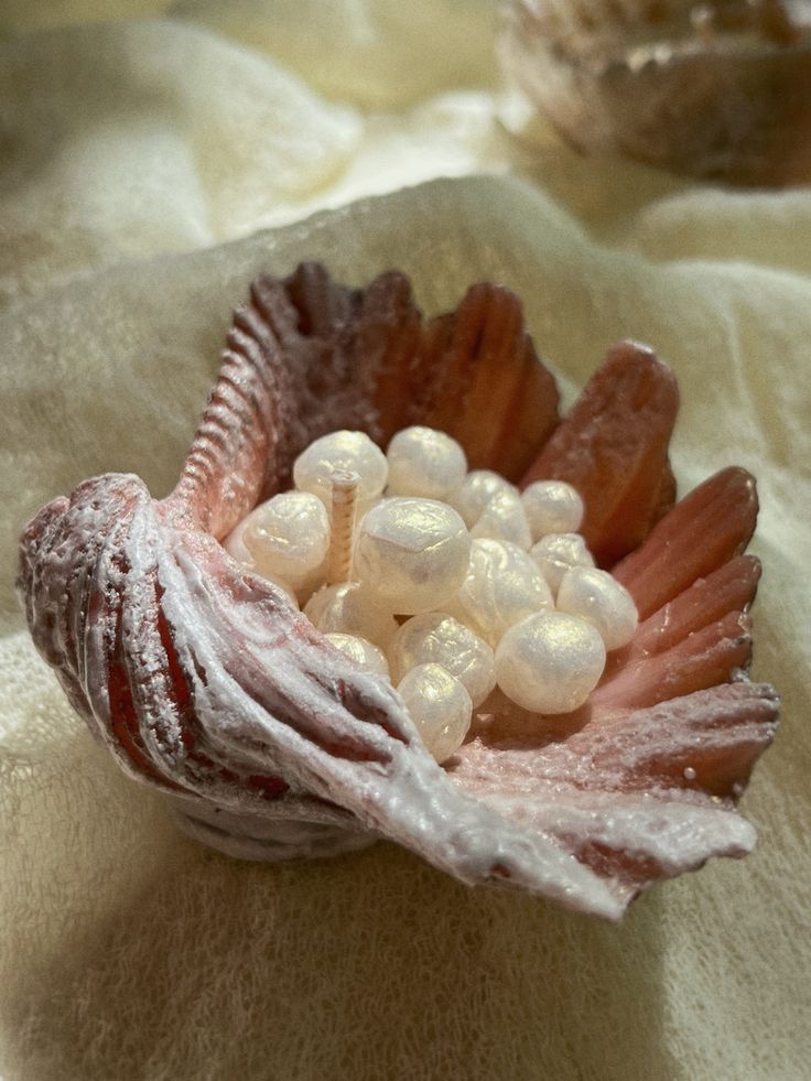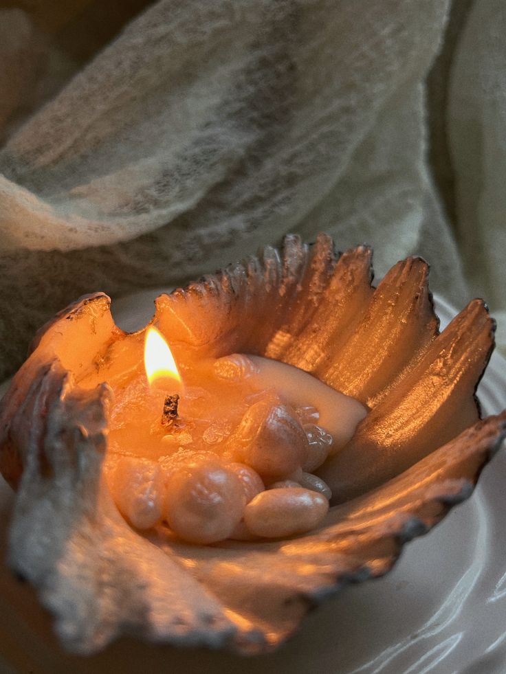 Свеча аккуратно имитирует раковину, украшенную жемчугом, придавая интерьеру элегантность и особую атмосферу уюта.