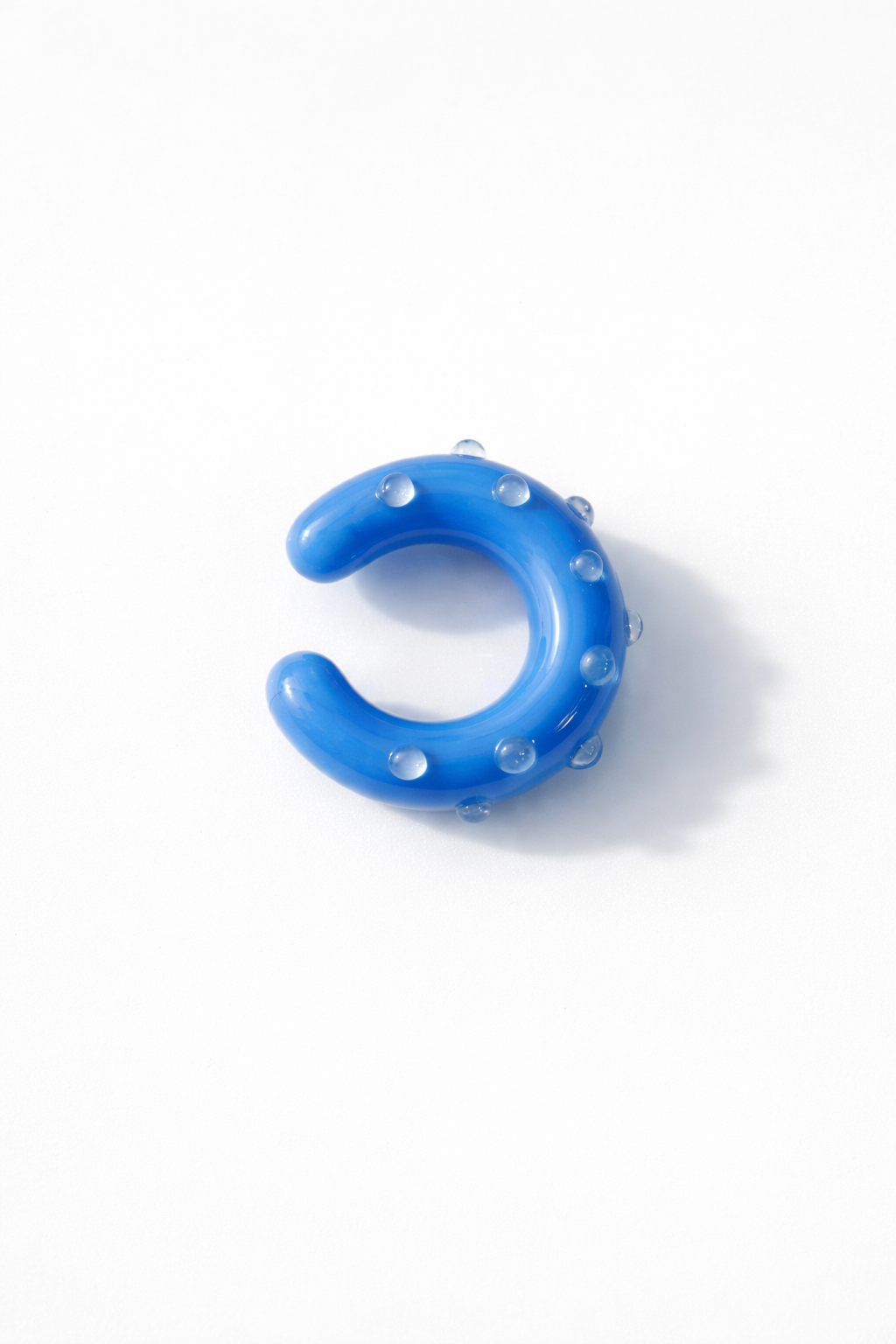 Яркое украшения на ухо, которое не требует прокола. Кафф создается вручную в пламени горелки, а затем проходят отжиг в муфельной печи, чтобы стать прочнее. Так как украшения создаются из стекла в свободной технике, без использования форм, точный повтор невозможен, и всегда будут небольшие отличия.