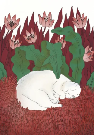 Картхолдер двухсторонний с иллюстрацией «Белый котик», художница из Санкт-Петербурга Валя Карнавалова.