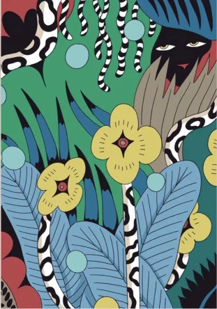 Картхолдер двухсторонний с иллюстрацией «В тени цветов», художница из Санкт-Петербурга Валя Карнавалова.