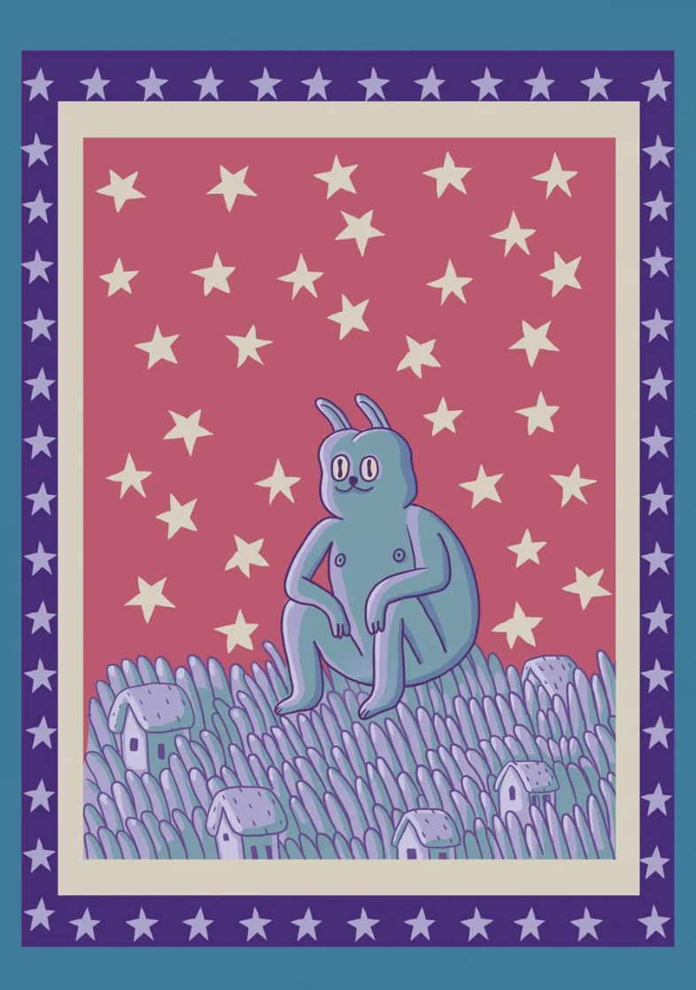 Картхолдер с иллюстрацией «Заяц под звёздами», художница из Санкт-Петербурга Валя Карнавалова.