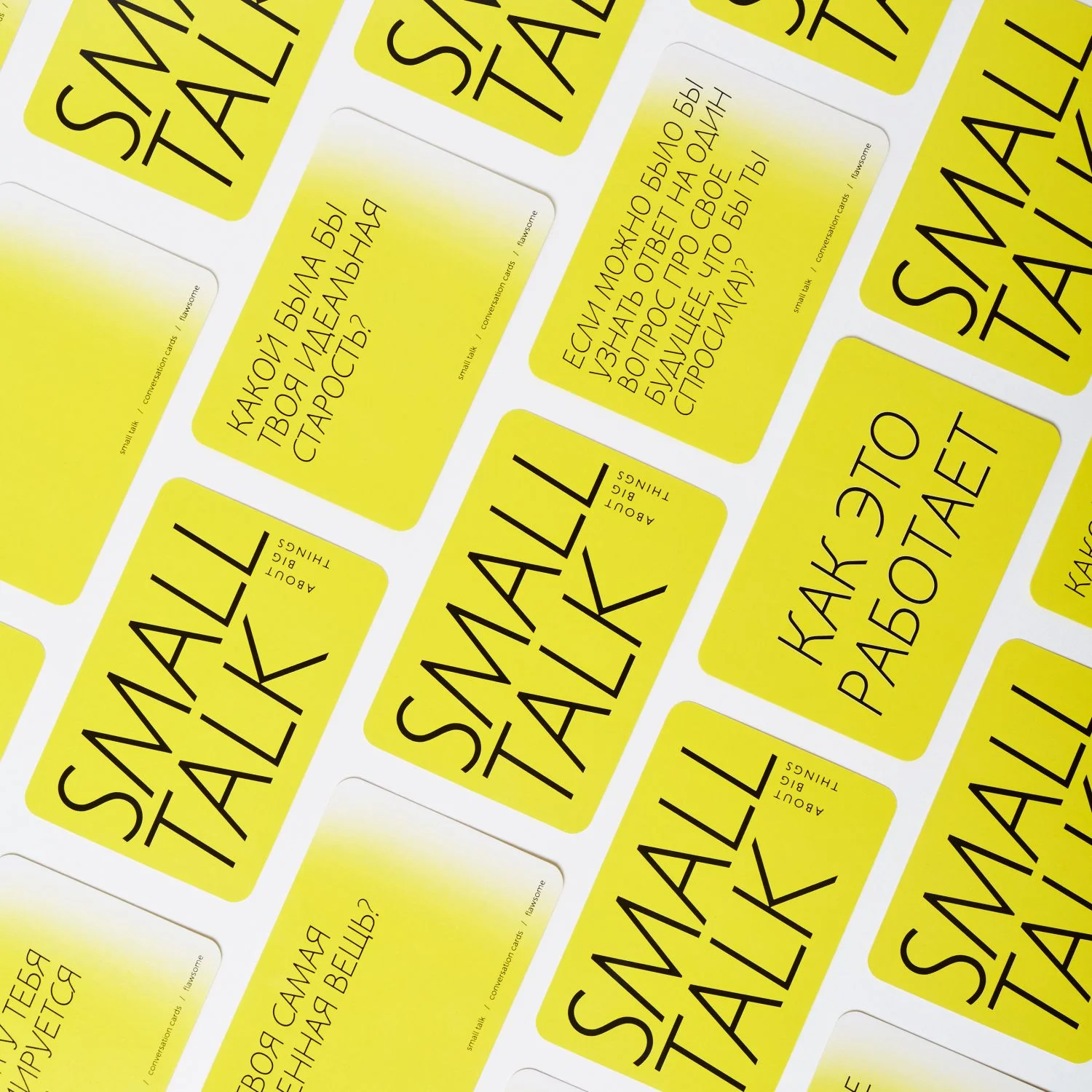 Small Talk - набор разговорных карточек, которые помогут растопить лед любой беседы, либо сделают посиделку с друзьями еще увлекательней.