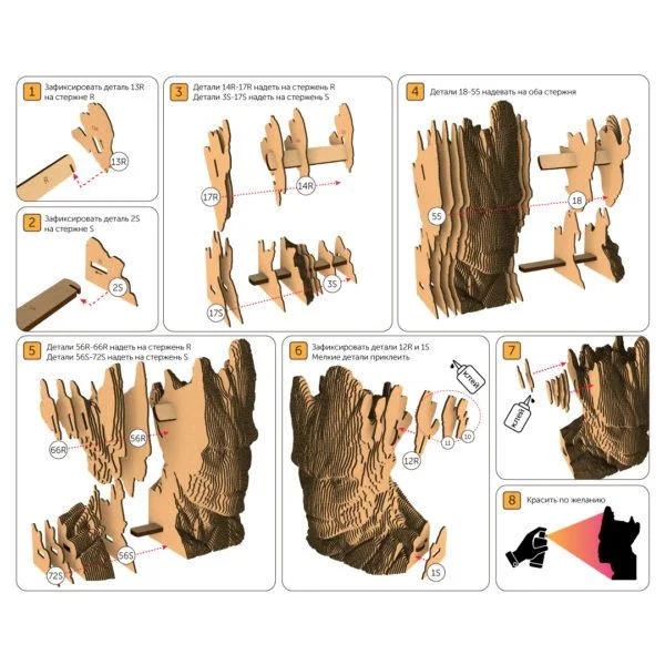 Для наборов используется только высококачественный экологически чистый пищевой гофрокартон, поэтому скульптуры не только красивые и долговечные, но и абсолютно безопасные. Украсить ими интерьер можно даже в спальне и детской.