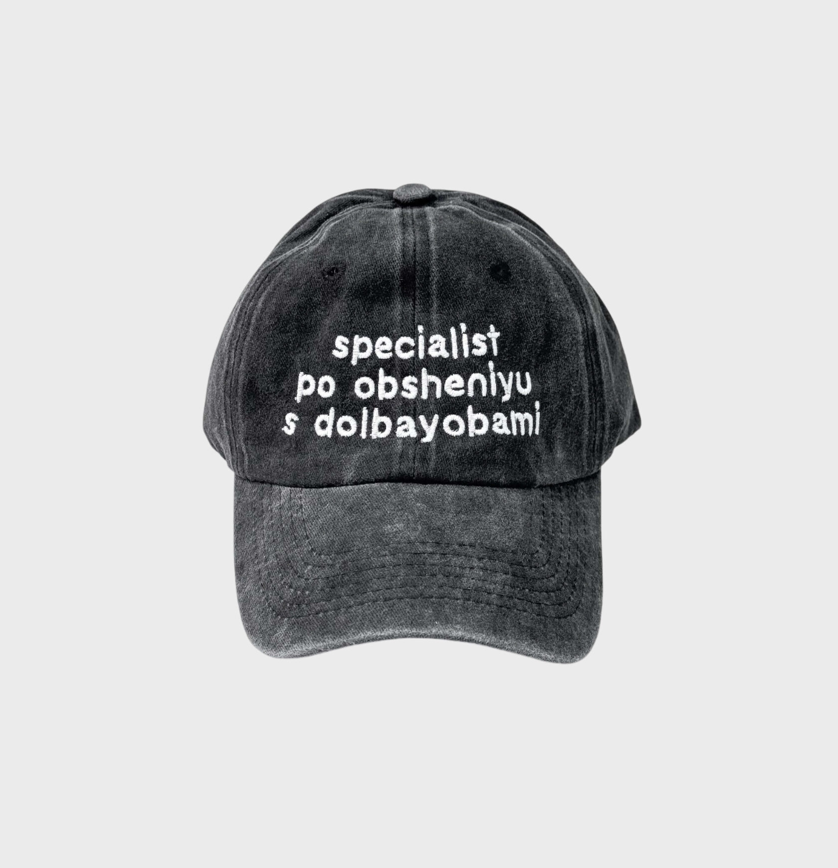 Кепка «Specialist po obsheniyu s dolba*obami», черно-серая