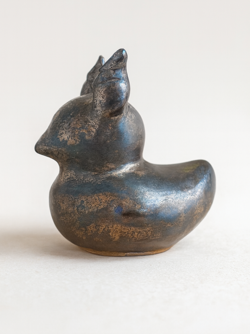 Керамическая фигурка Уточка с рогами, металлик, 7 см