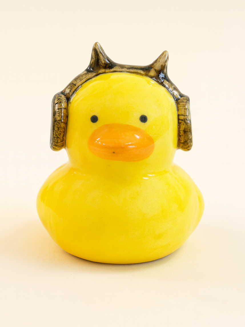 Керамическая фигурка "Уточка" высотой 6 см — это ручная работа, выполненная с вниманием к деталям. Каждый экземпляр уникален, поэтому у вас может попасться уточка в наушниках с рожками или просто в наушниках. Различия могут проявляться в небольших деталях или особенностях окраски, что делает каждую фигурку особенной. Такие изделия создаются с любовью и индивидуальностью, поэтому каждая уточка — это неповторимый сувенир или оригинальный подарок.