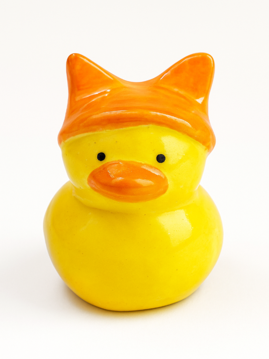 Керамическая фигурка "Уточка в оранжевой шапке с ушками" высотой 6 см — это милое и уютное изделие ручной работы. Каждая фигурка выполнена с любовью и вниманием к деталям, что придает ей особую индивидуальность. Оранжевая шапка с ушками делает уточку забавной и яркой, идеально подойдет в качестве милого сувенира или оригинального подарка. Обратите внимание, что возможны небольшие вариации в окраске и деталях, так как изделия создаются вручную, что только подчеркивает их уникальность.