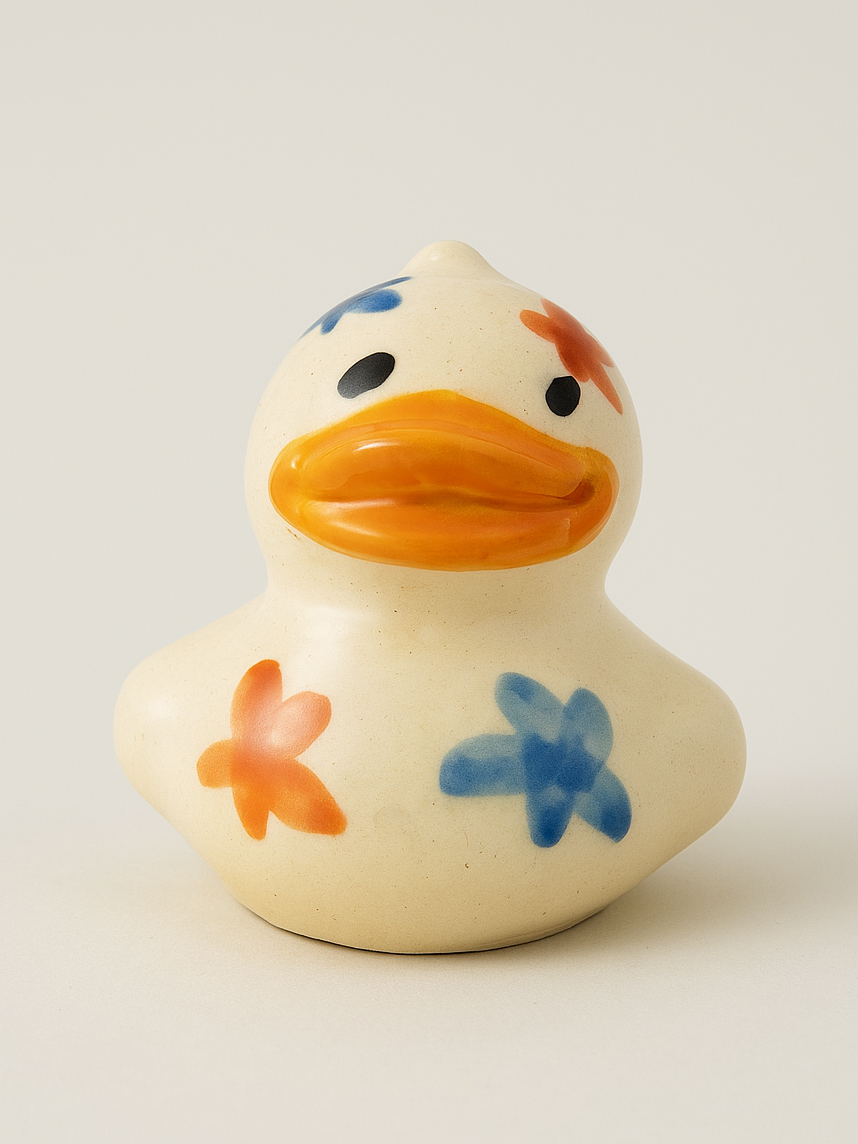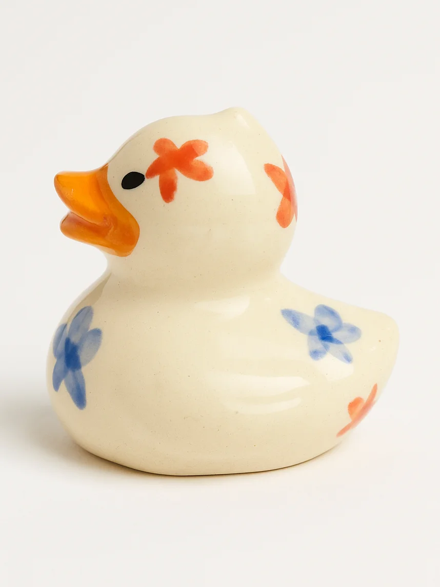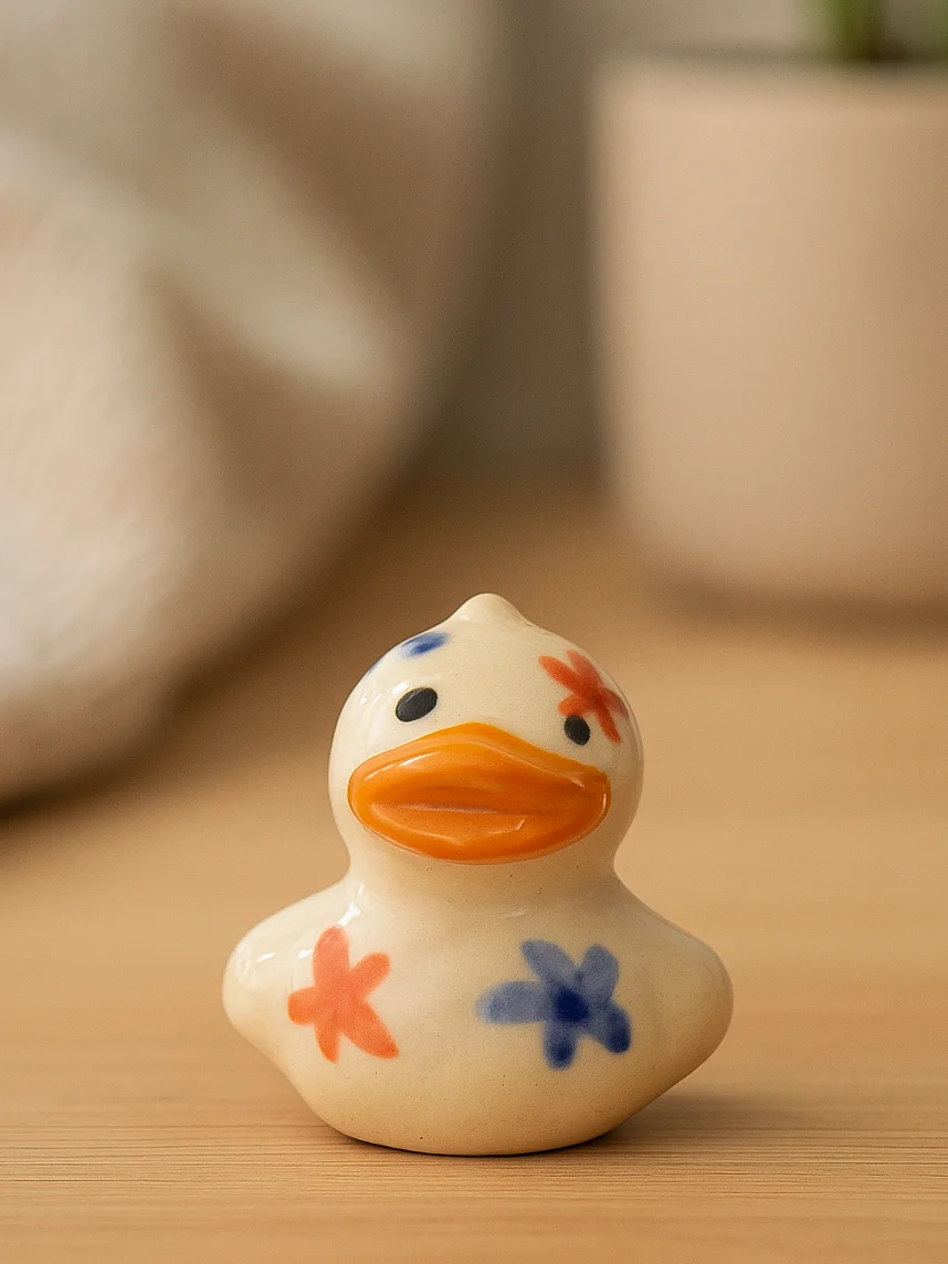 Керамическая фигурка Утёнок с разноцветными цветочками, 4 см