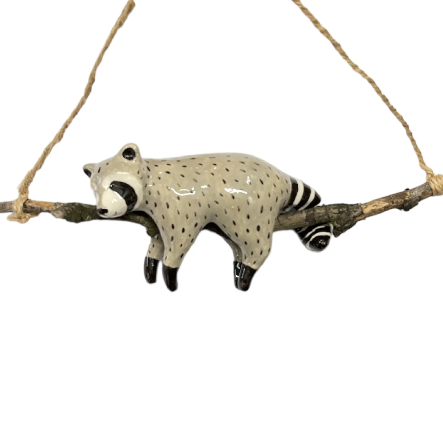 Керамическая подвеска интерьерная «Спящий енот». Производитель - московский бренд «Mama Cherepaha».