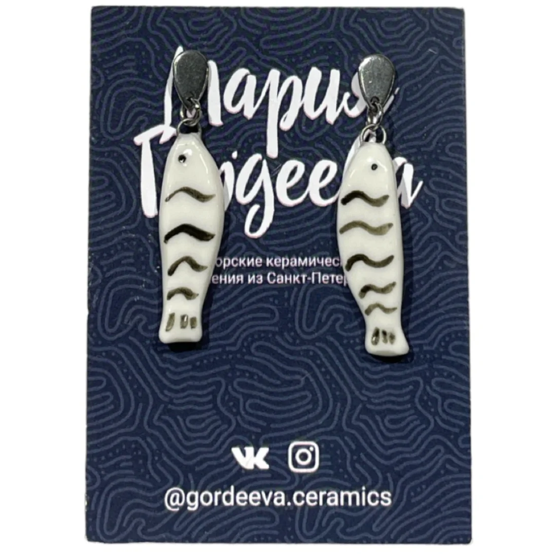 Керамические серёжки-гвоздики «Полосатые рыбки» от петербургского бренда Gordeeva ceramics.