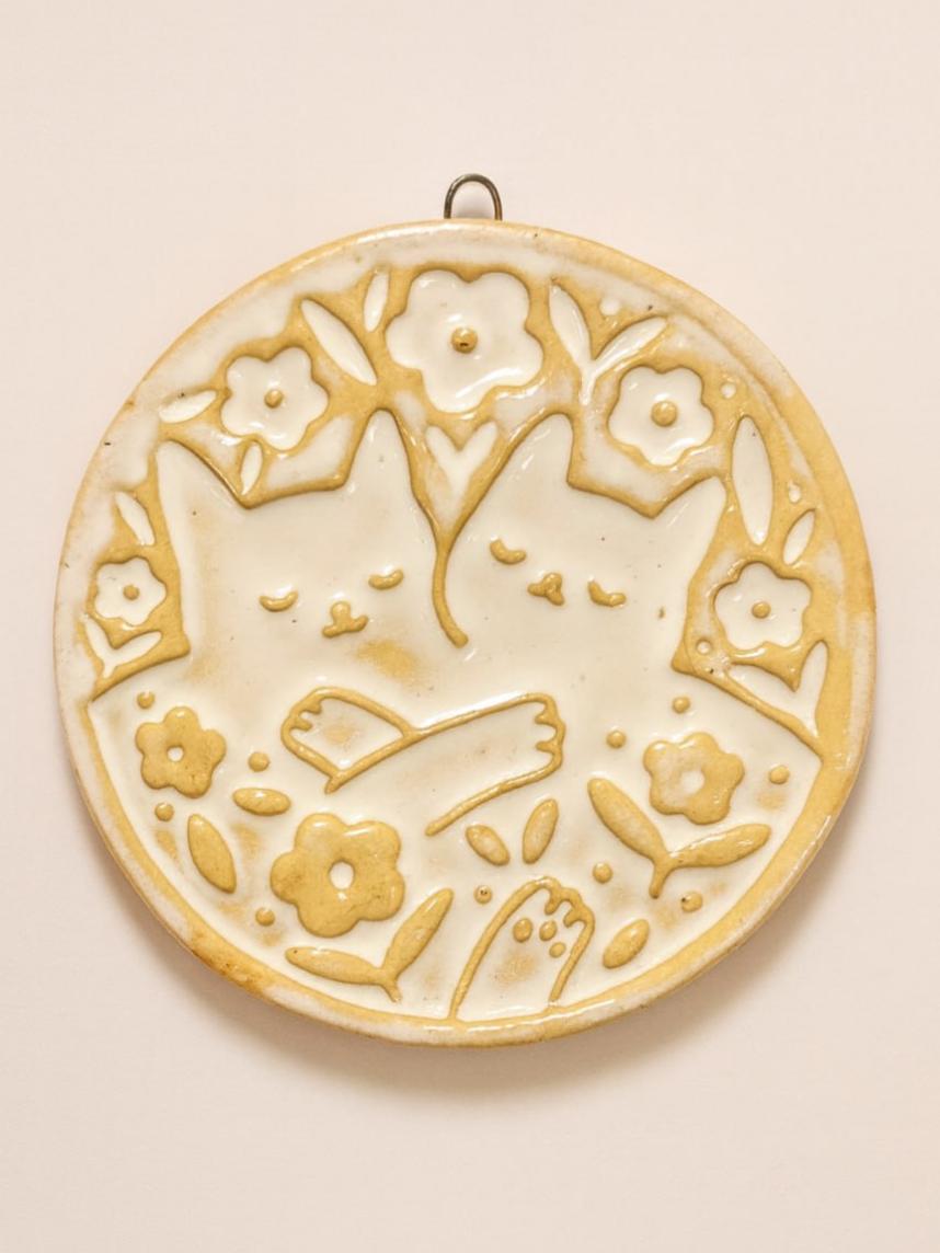 Керамическая интерьерная подвеска-изразец «Котики» в цвете румянец. Производитель - петербургский бренд «botanica pottery».