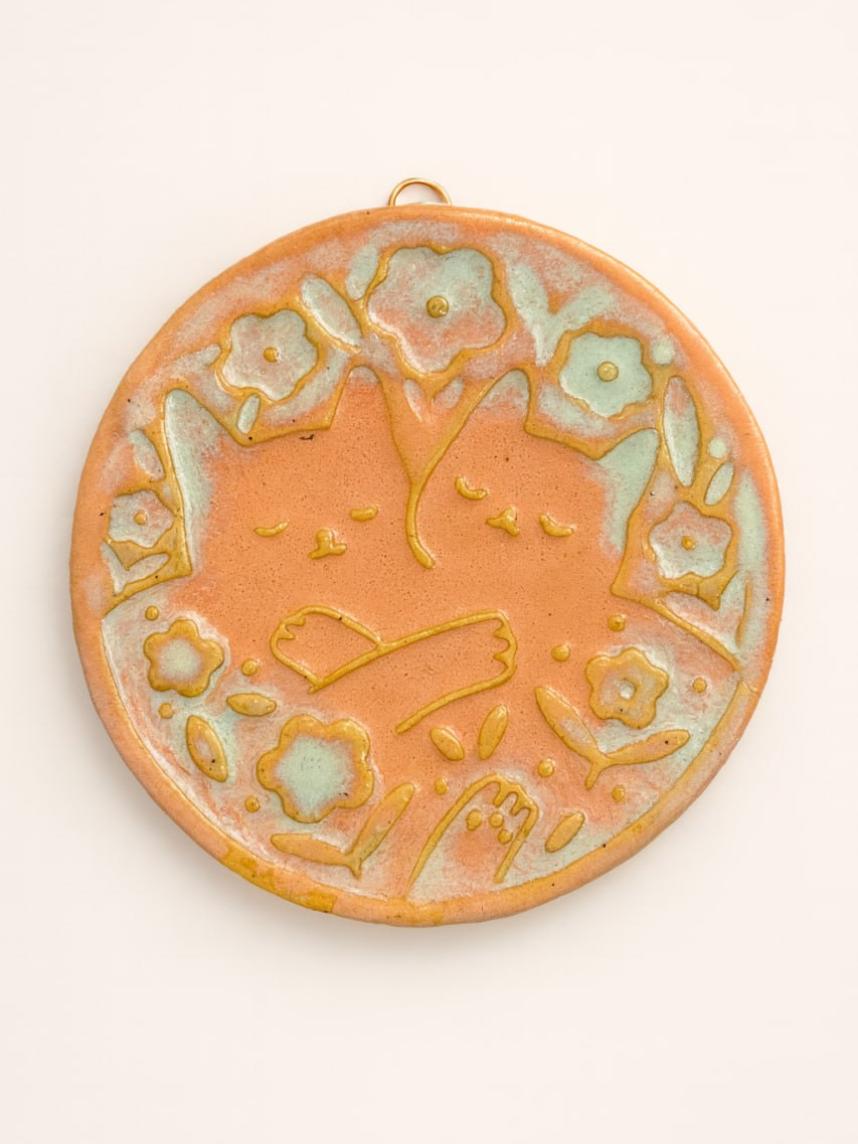 Керамическая интерьерная подвеска-изразец «Котики» в цвете румянец. Производитель - петербургский бренд «botanica pottery».