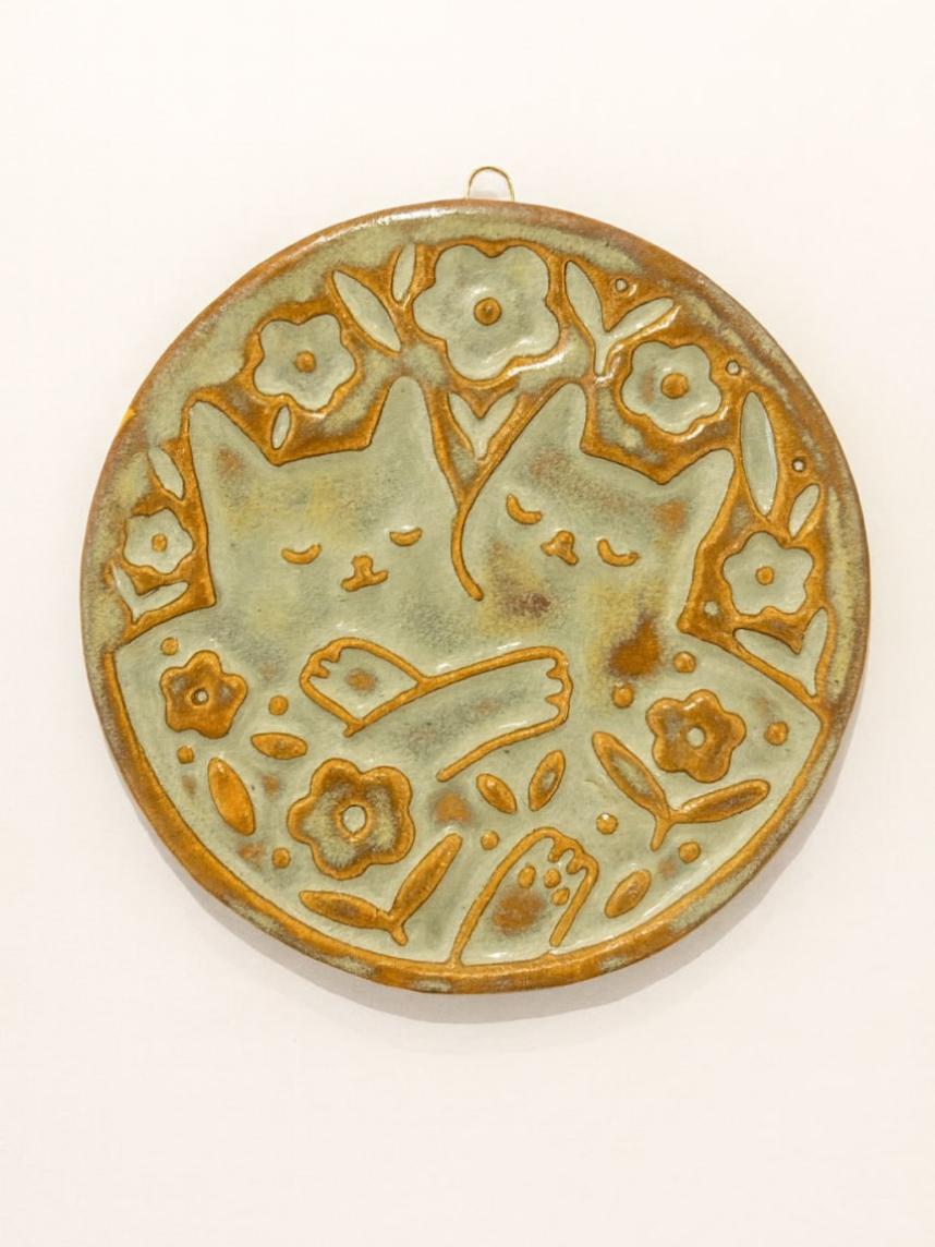Керамическая интерьерная подвеска-изразец «Котики» в цвете румянец. Производитель - петербургский бренд «botanica pottery».