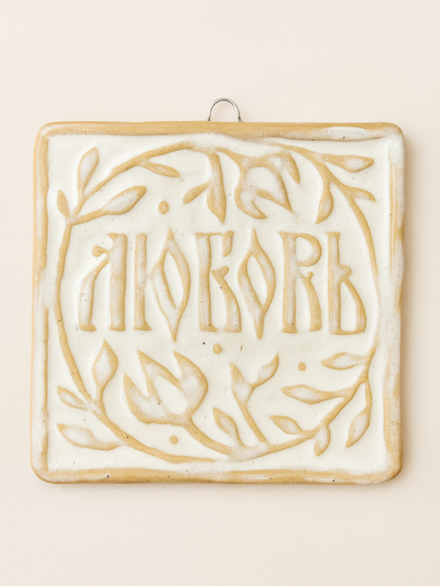 Керамическая интерьерная подвеска-изразец «Любовь» в цвете черёмуха.