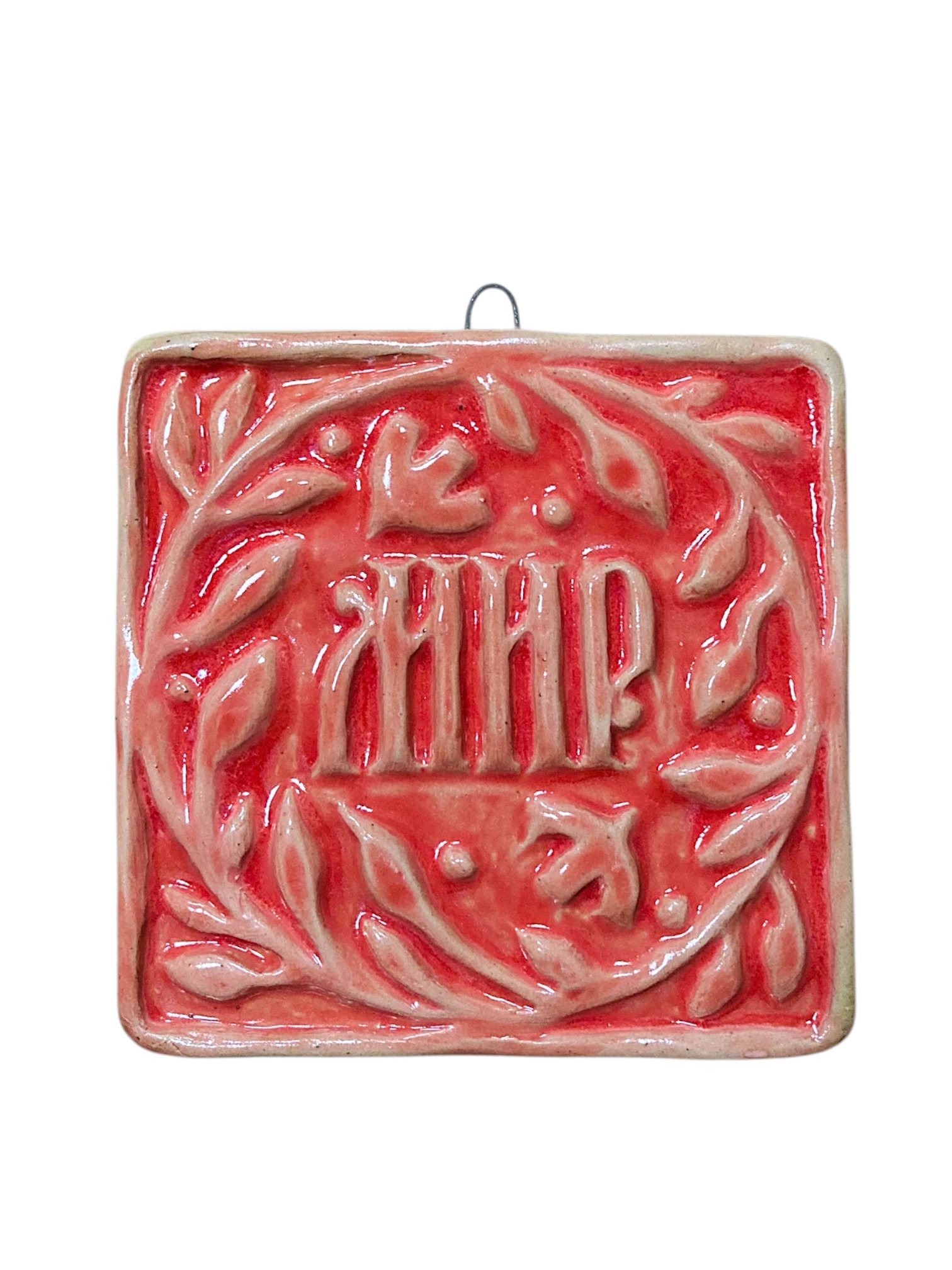 Керамическая интерьерная подвеска-изразец «Мир» в цвете калина. Производитель - петербургский бренд «botanica pottery».