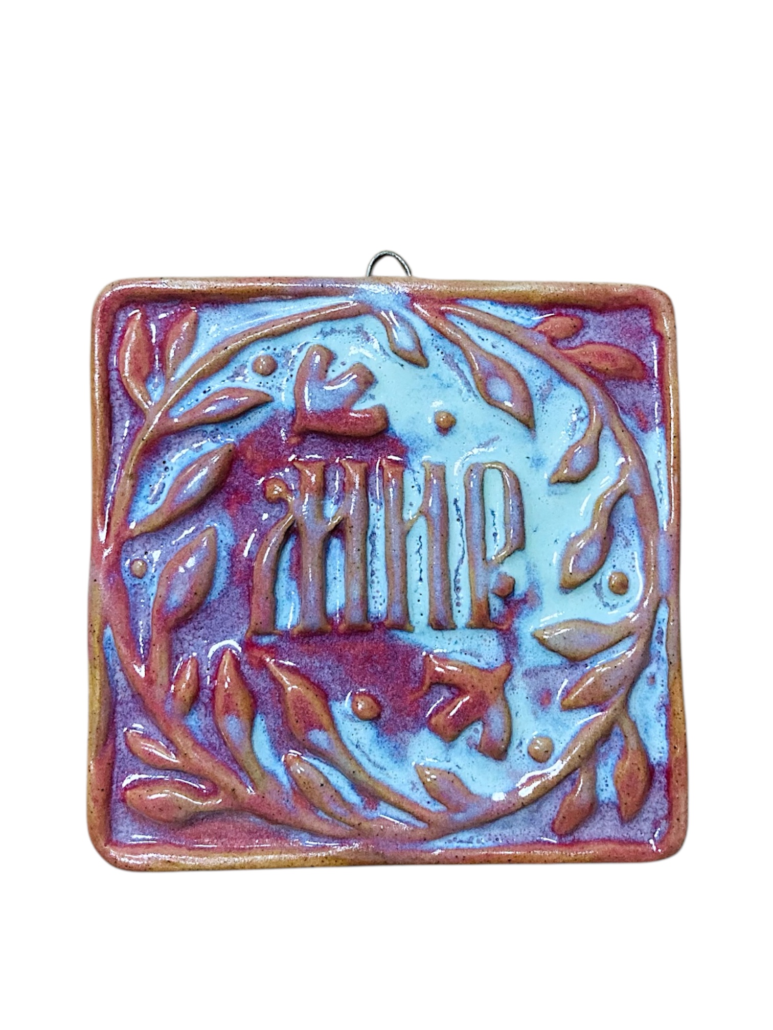 Керамическая интерьерная подвеска-изразец «Мир» в цвете заря. Производитель - петербургский бренд «botanica pottery».