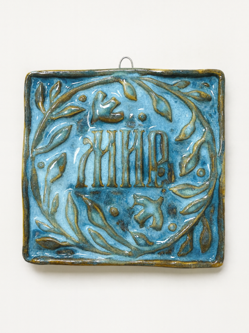 Керамическая интерьерная подвеска-изразец «Мир» в цвете жимолость. Производитель - петербургский бренд «botanica pottery».