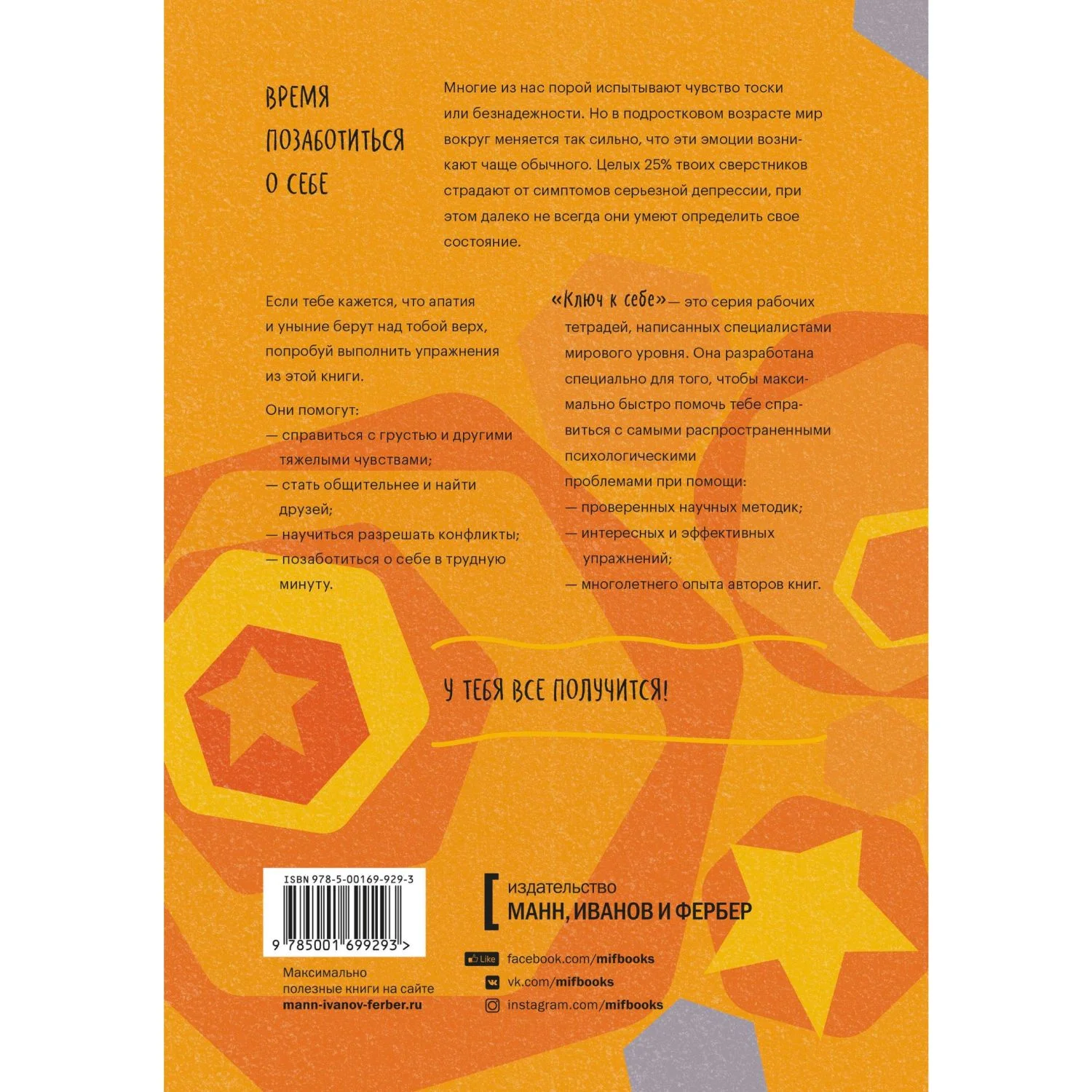 В подростковом возрасте происходит так много перемен - физических, эмоциональных и психических. Неудивительно, что подростки ранимы, могут испытывать грусть, подавленность, растерянность и даже впадать в депрессию. Упражнения из этой тетради помогут справляться со стрессом, научиться преодолевать трудности, находить друзей и решать конфликты. Все люди разные, поэтому и упражнений в тетради приведено много, чтобы каждый мог найти подходящие для себя.
