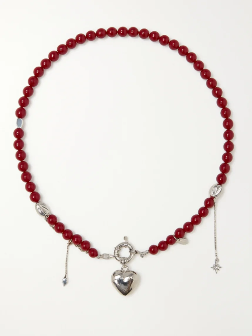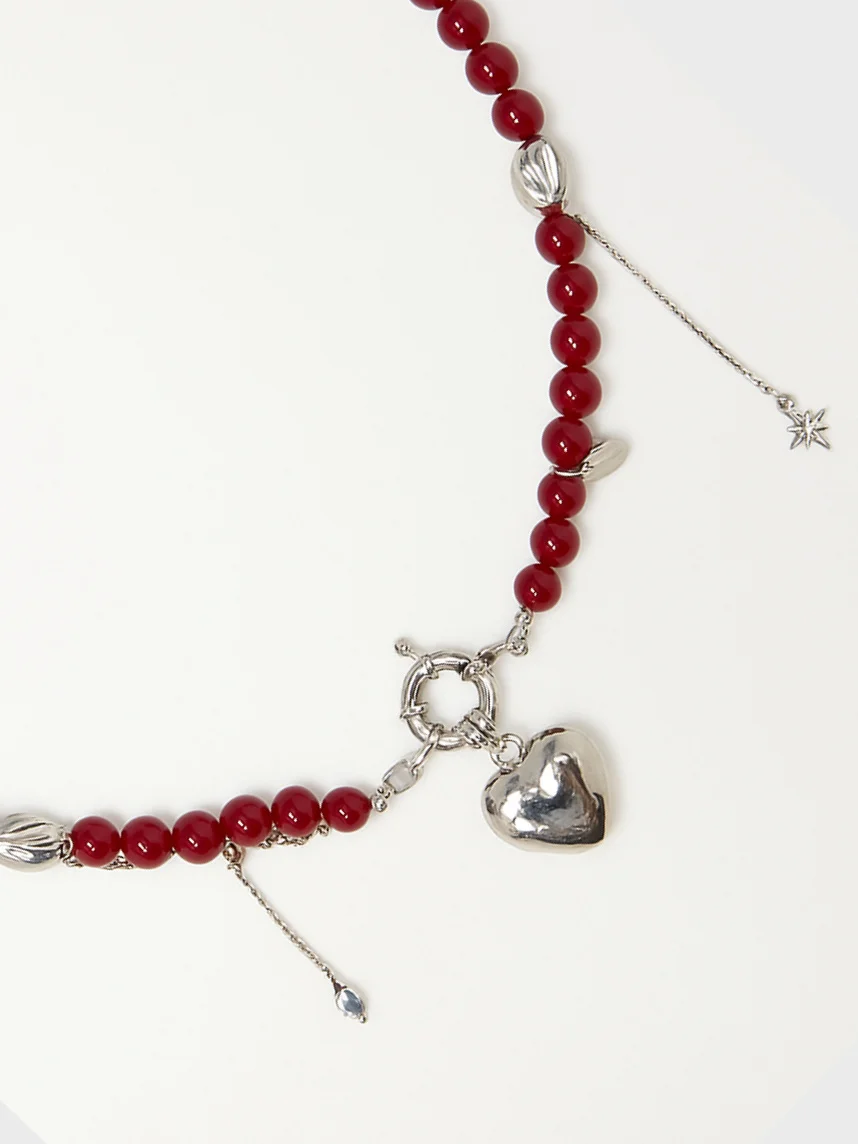 Колье ручной работы «Burgundy», рубеллит, родированная латунь