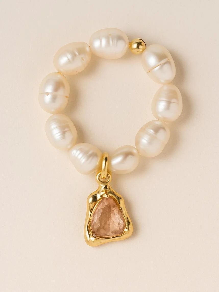 Кольцо из натурального речного жемчуга с подвесом