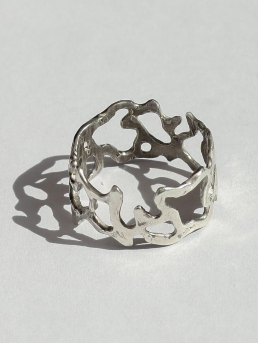 Кольцо напоминает кружевные летние тени. А ещё разводы морской пены на песке. Ажурное и нежное колечко.