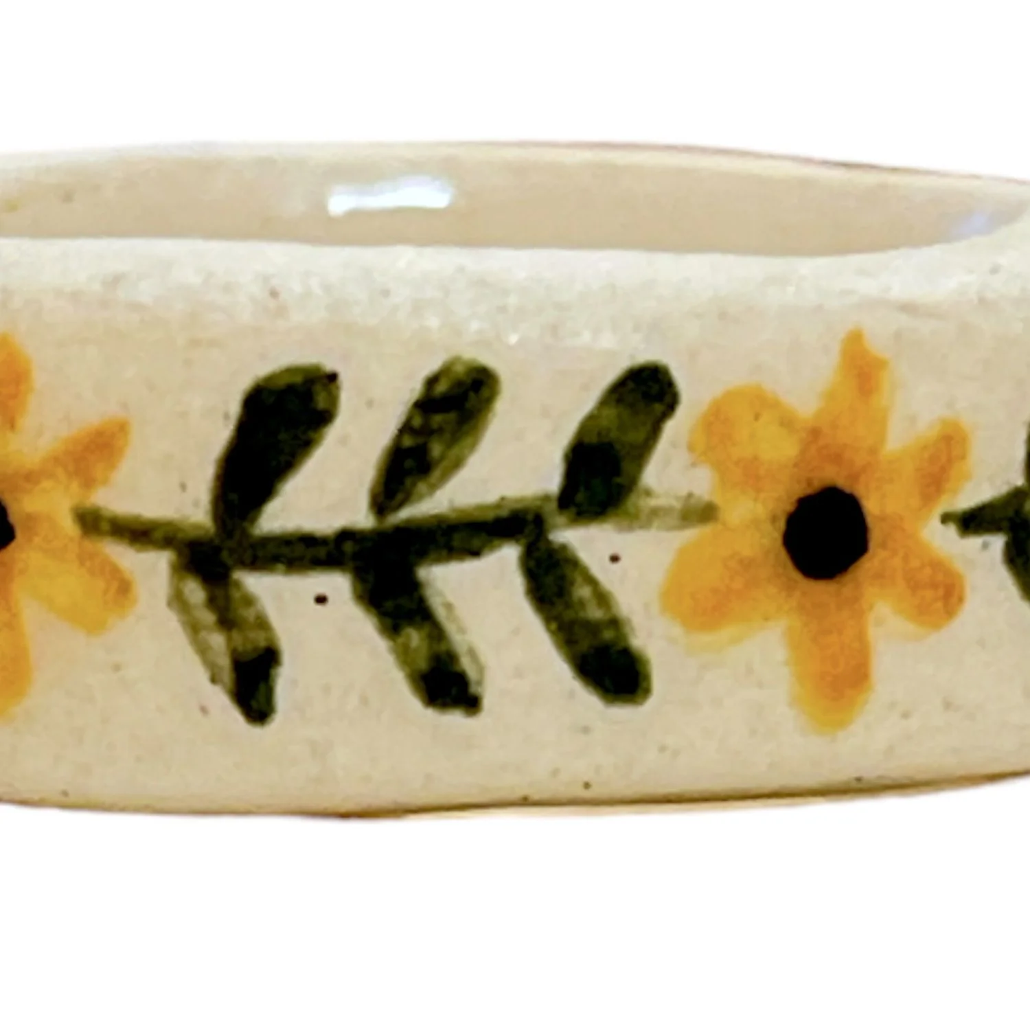 Кольцо Боттери керамика в жёлтый цветочек, керамика
