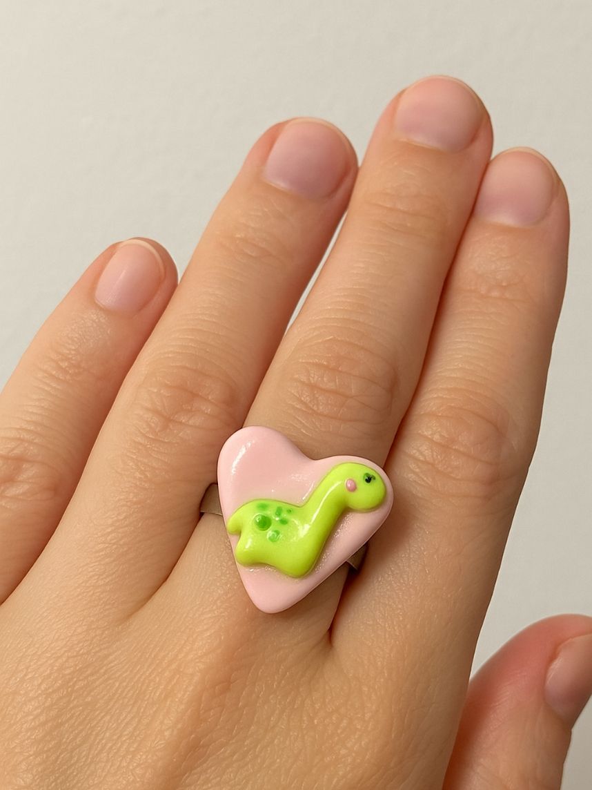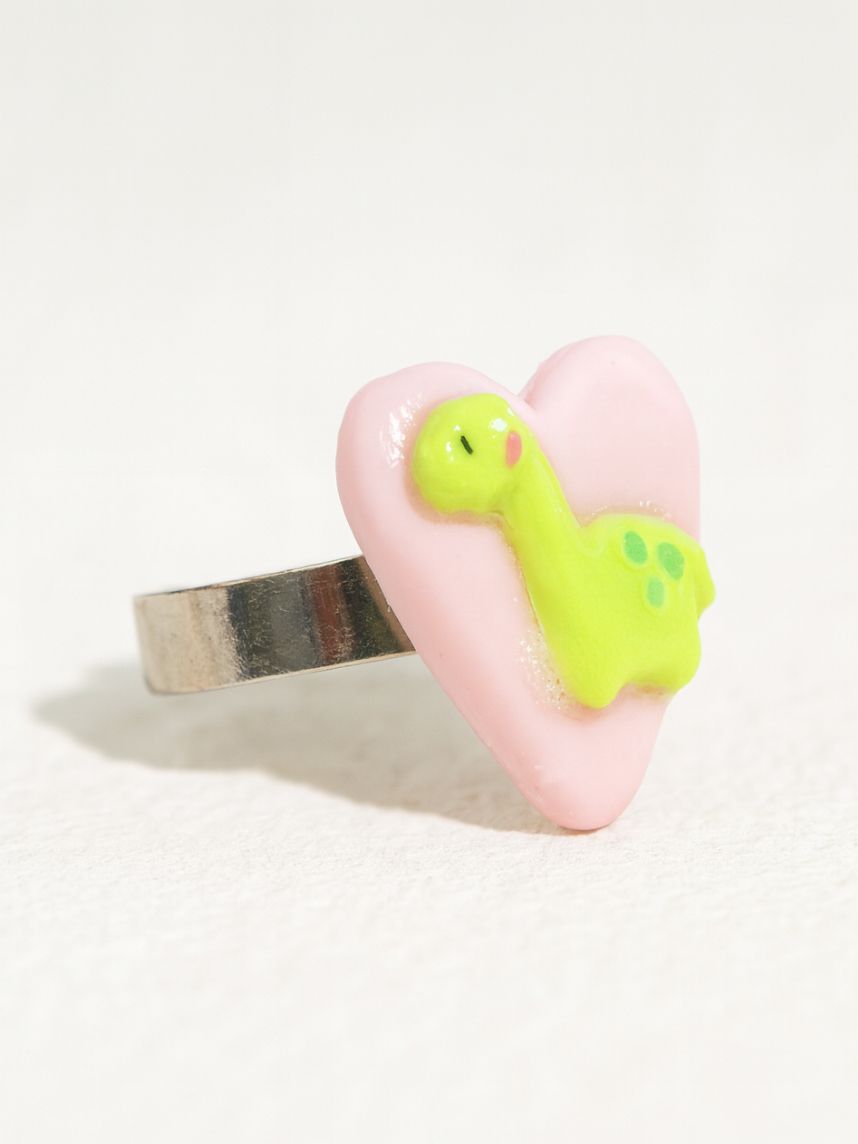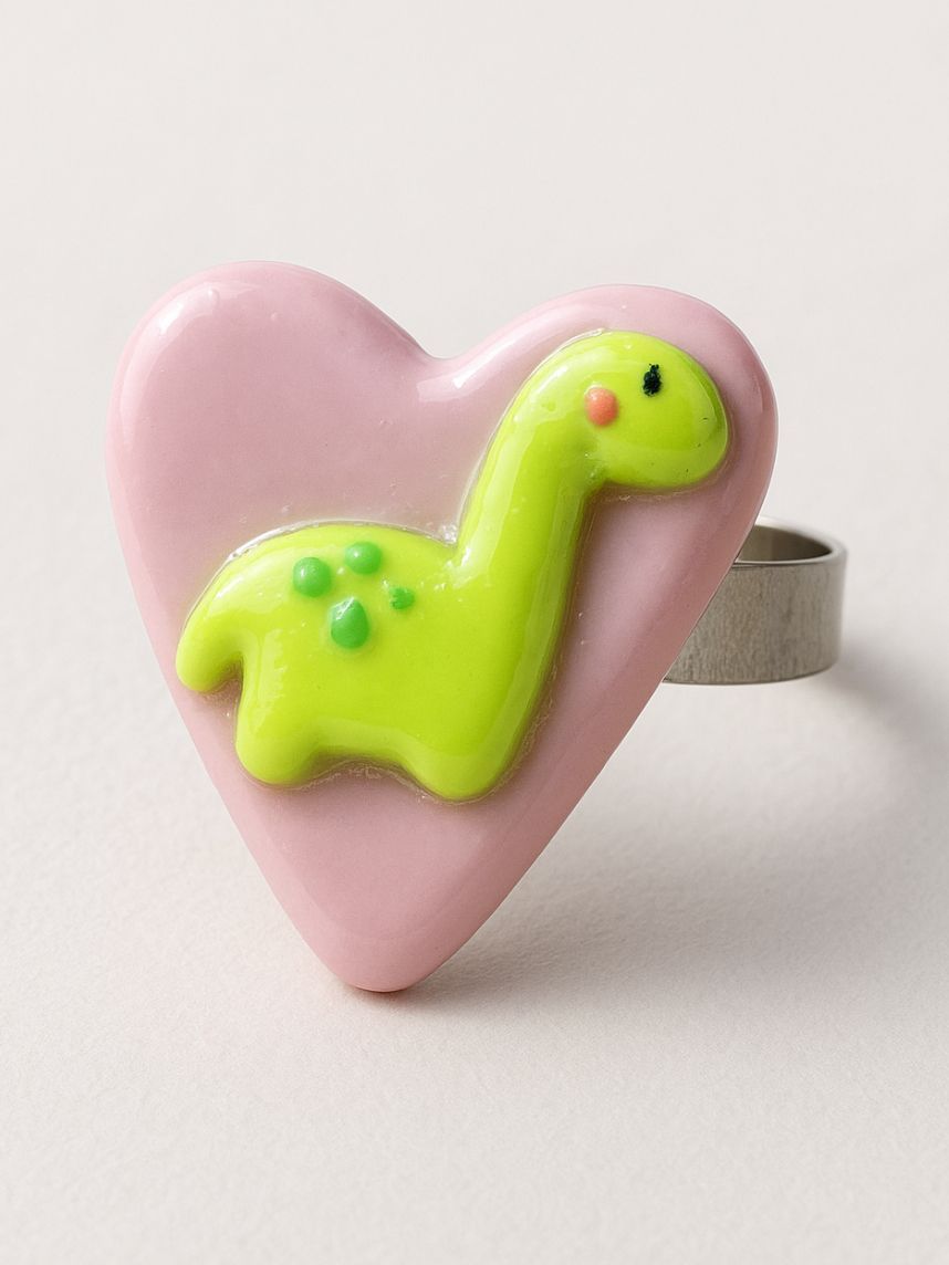 Милое кольцо ручной работы в виде динозаврика в сердце. Необычный подарок для себя или подруги!