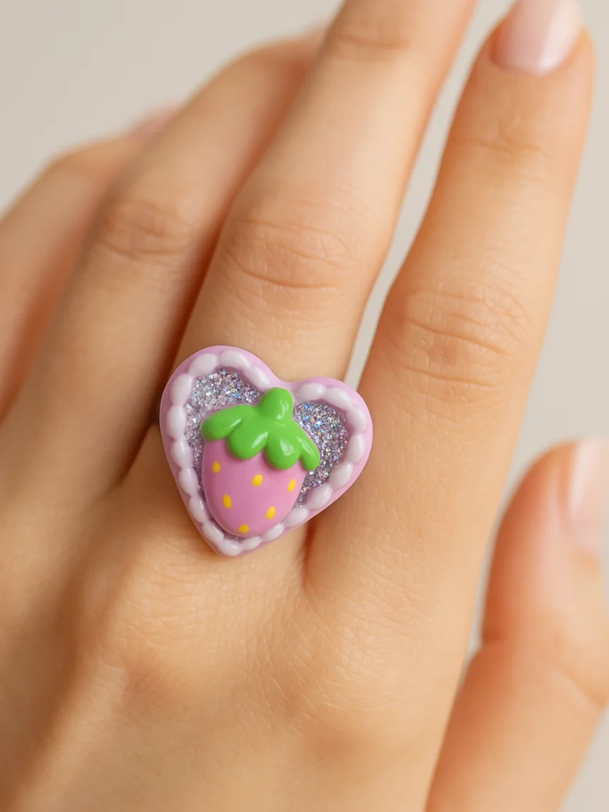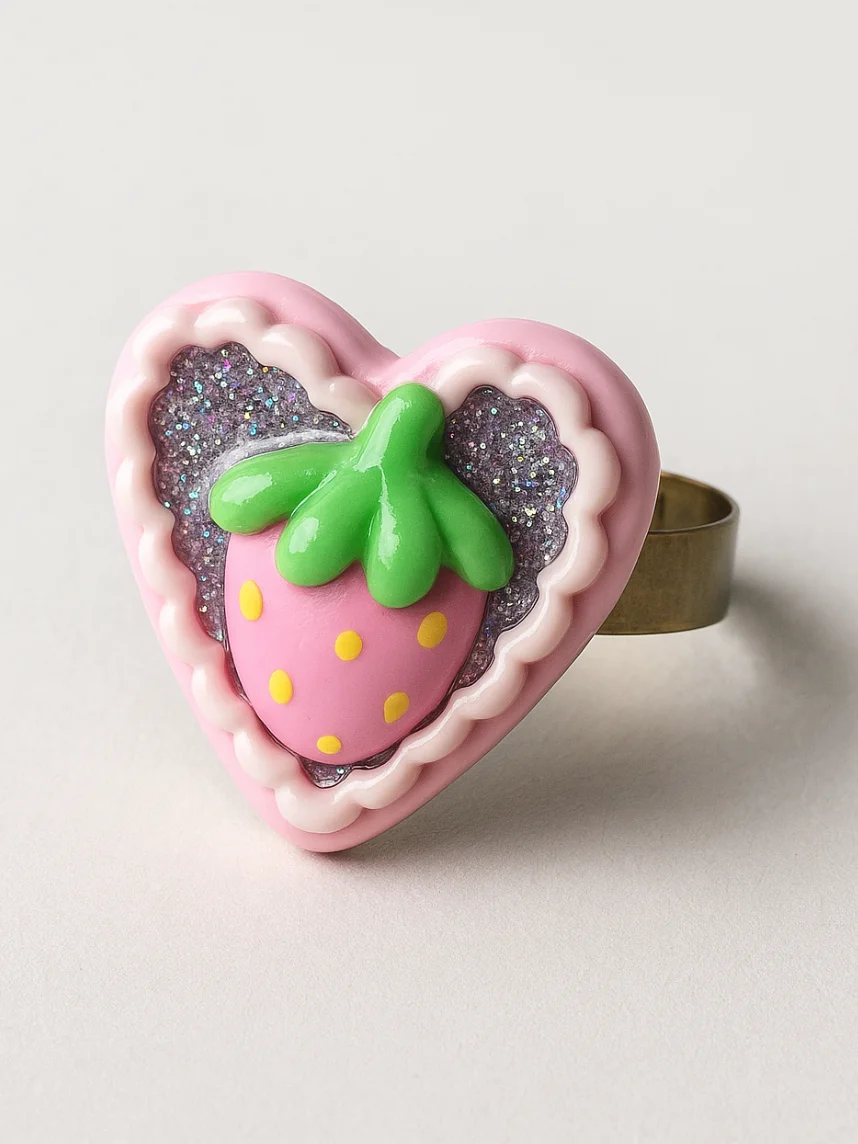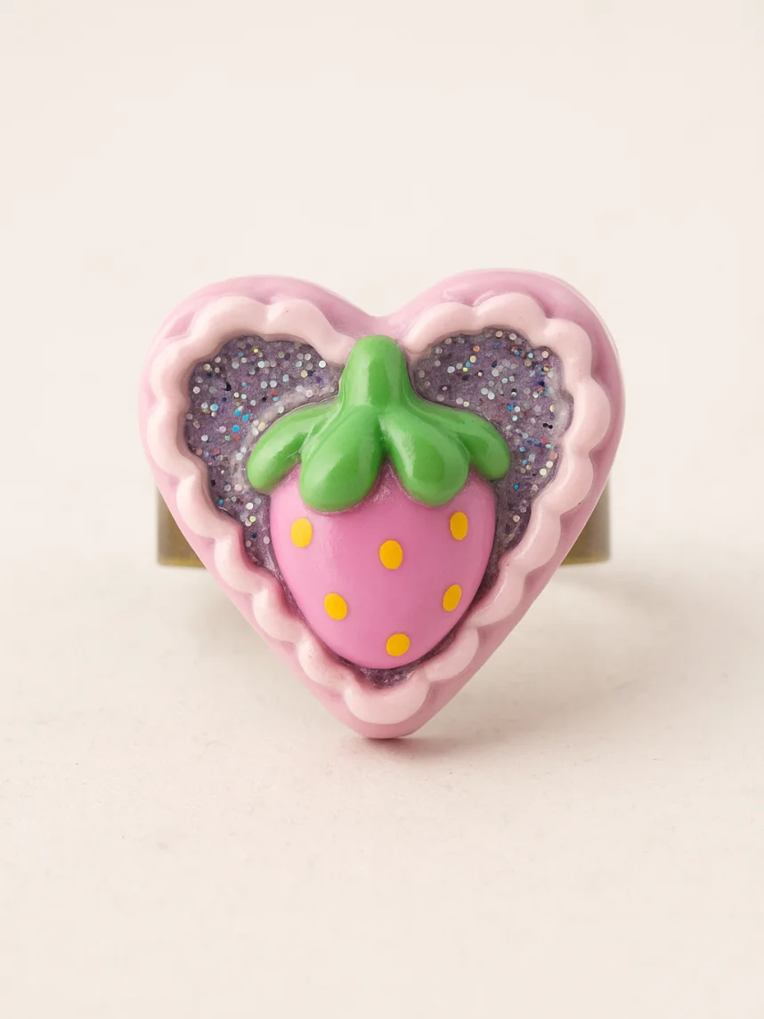 Кольцо Радость Рядом «Клубничка» с блестками, незамкнутое, полимерная глина