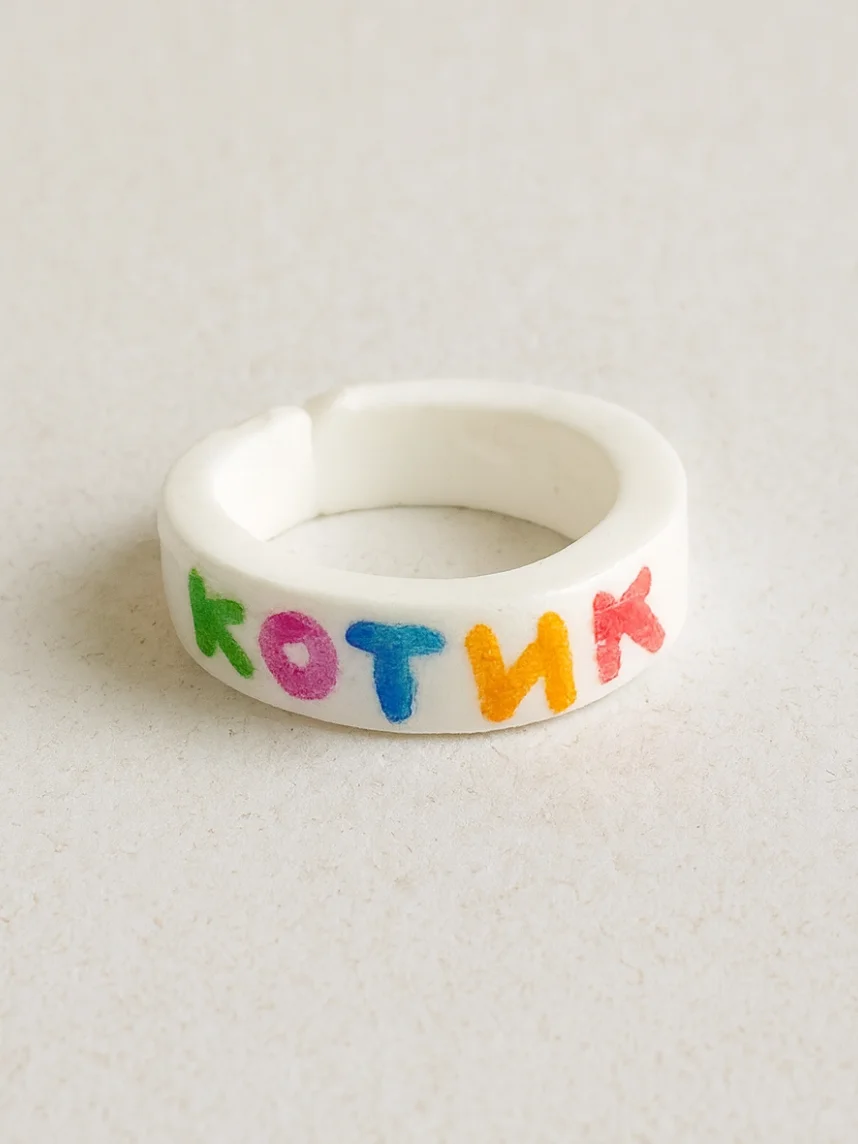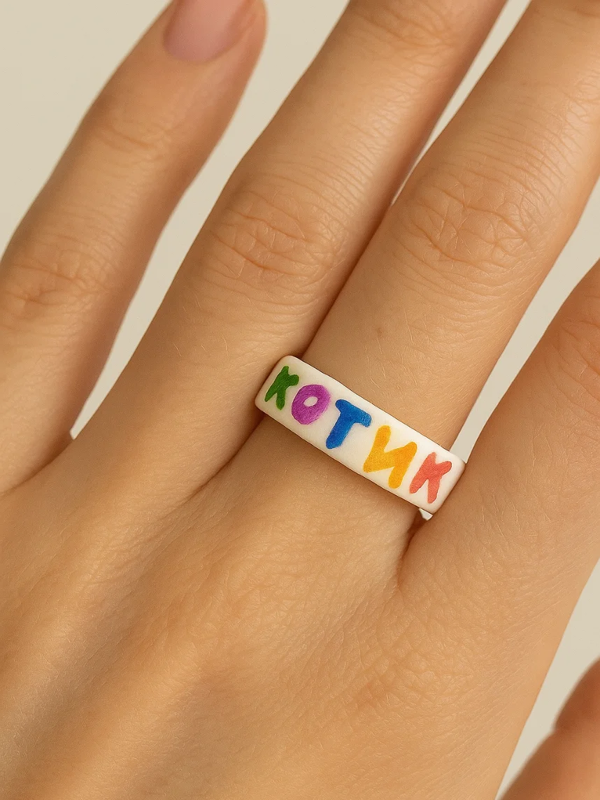 Забавное кольцо ручной работы с милой надписью «Котик». Необычный подарок для себя или друга с чувством юмора!