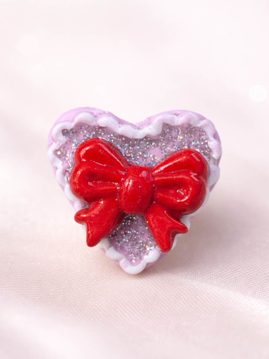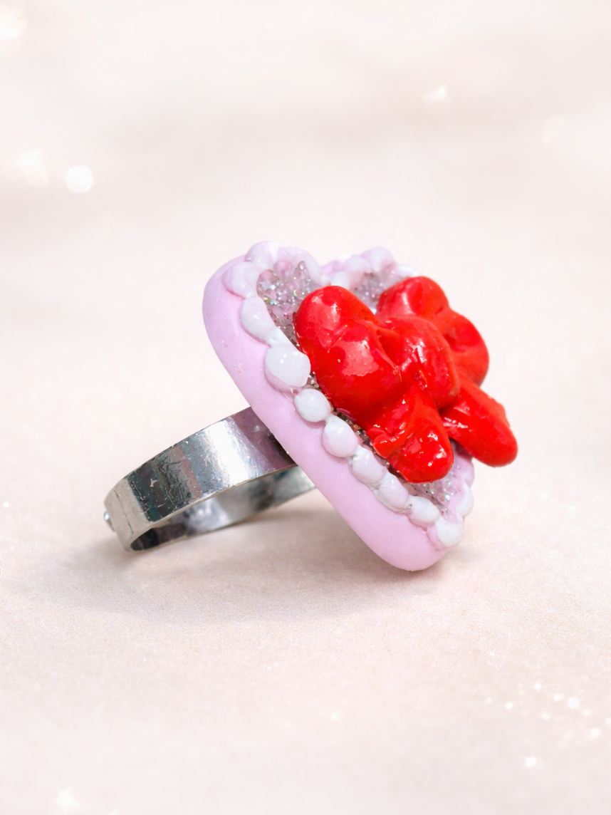 Милое объемное кольцо ручной работы с красным бантиком. Необычный подарок для себя или подруги!