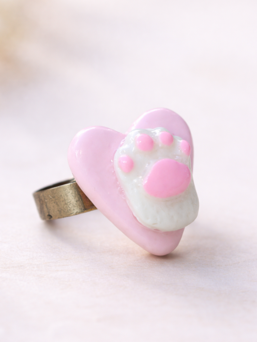 Милое кольцо ручной работы в виде лапки в сердце. Необычный подарок для себя или подруги!