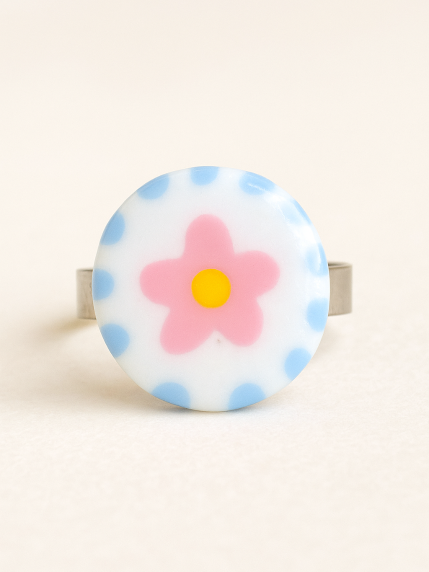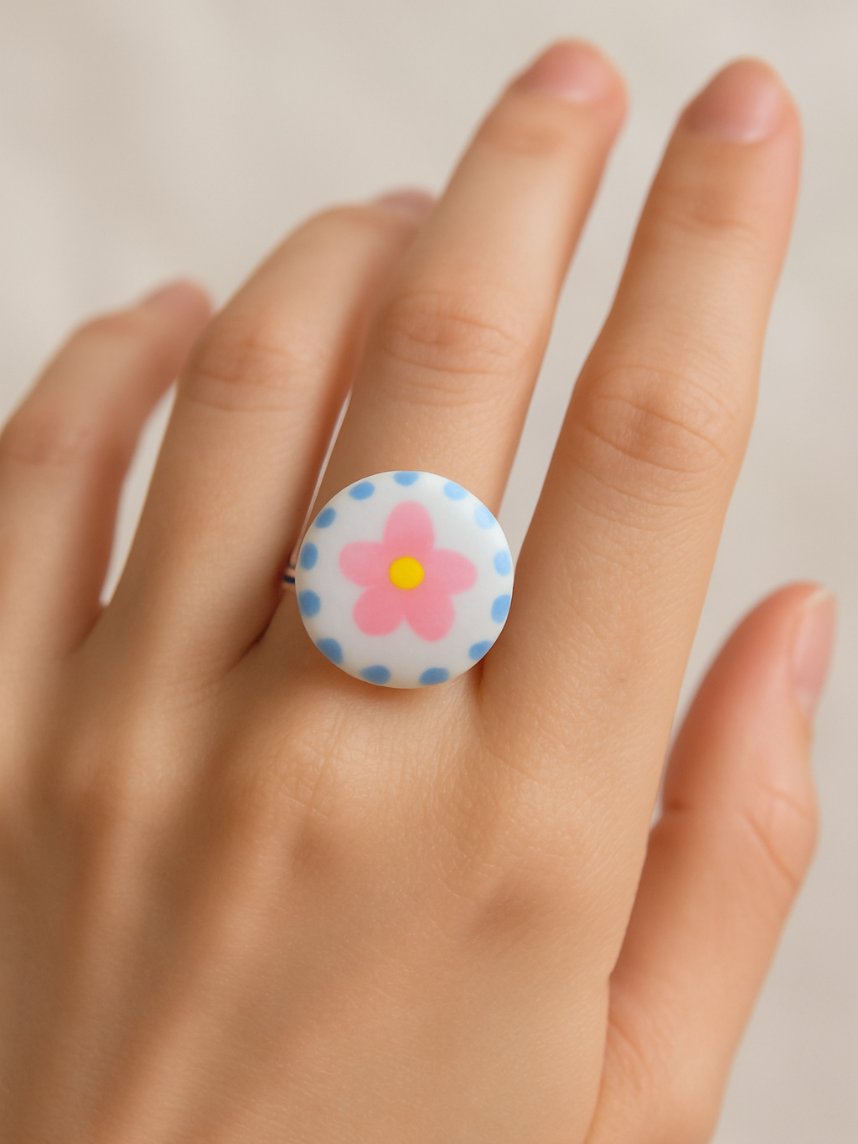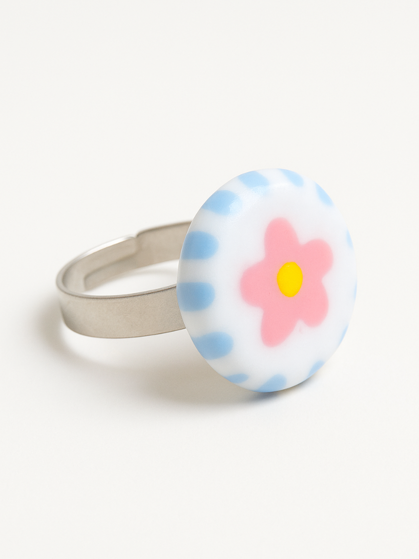 Милое круглое кольцо ручной работы с розовым цветком. Необычный подарок для себя или подруги!