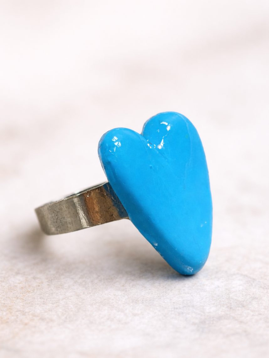 Милое кольцо ручной работы в виде сердца цвета индиго. Необычный подарок для себя или подруги!