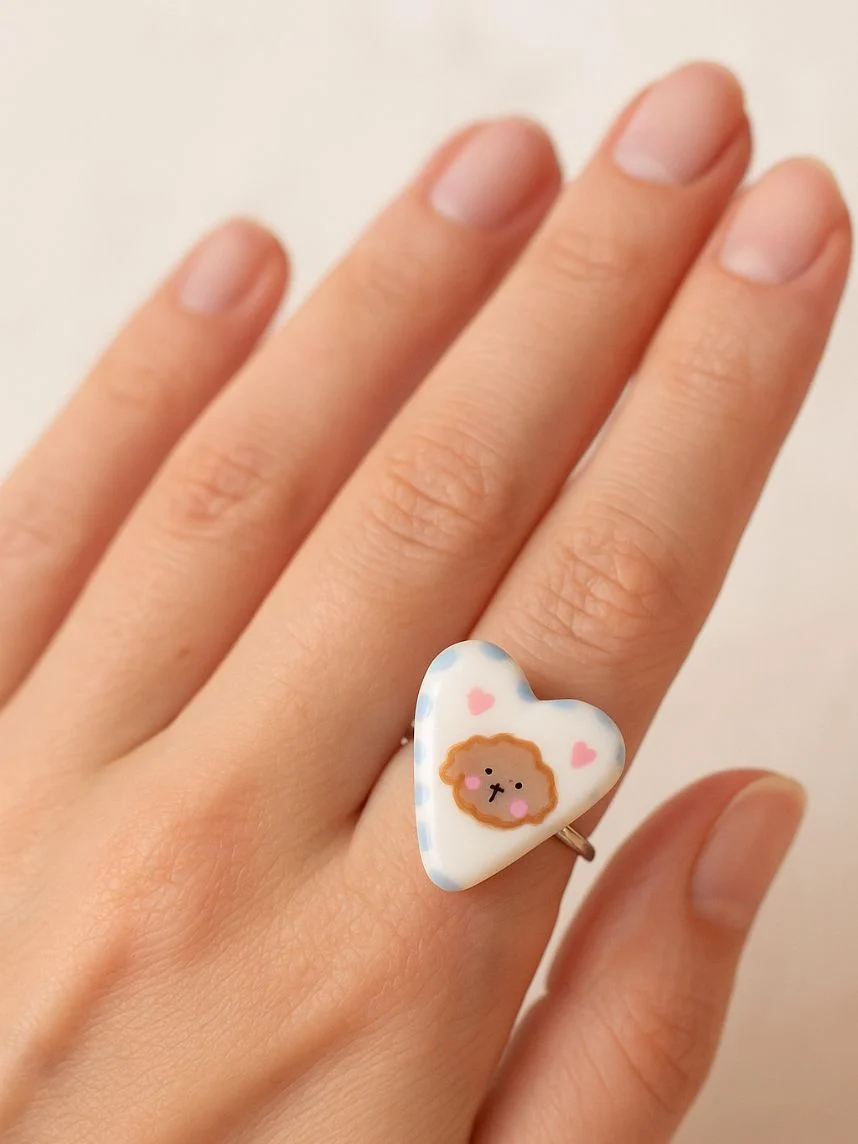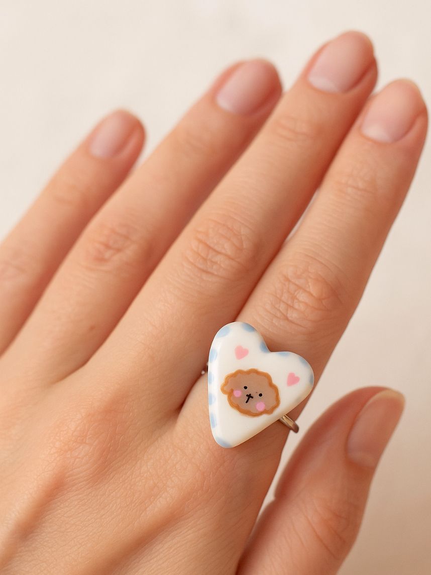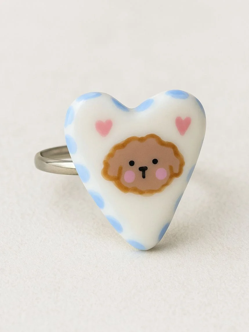 Милое объемное кольцо ручной работы в виде сердца с пуделем. Необычный подарок для себя или подруги!