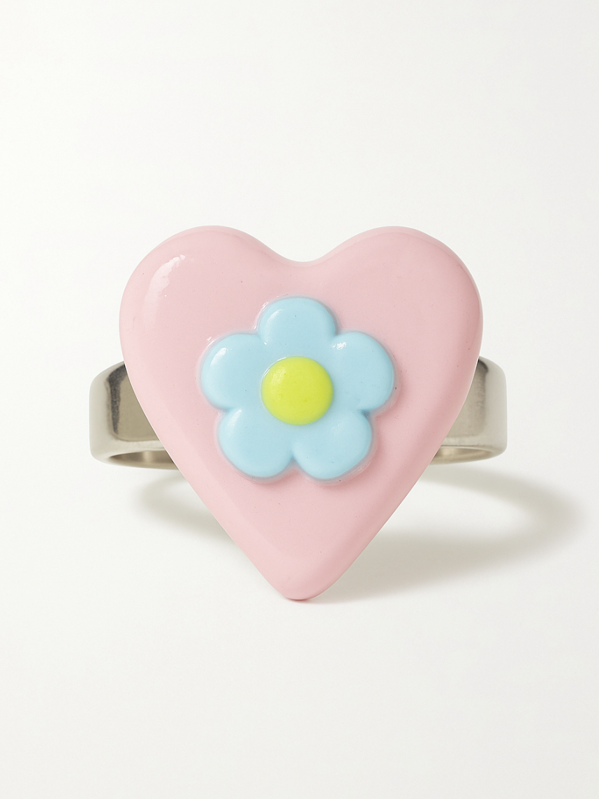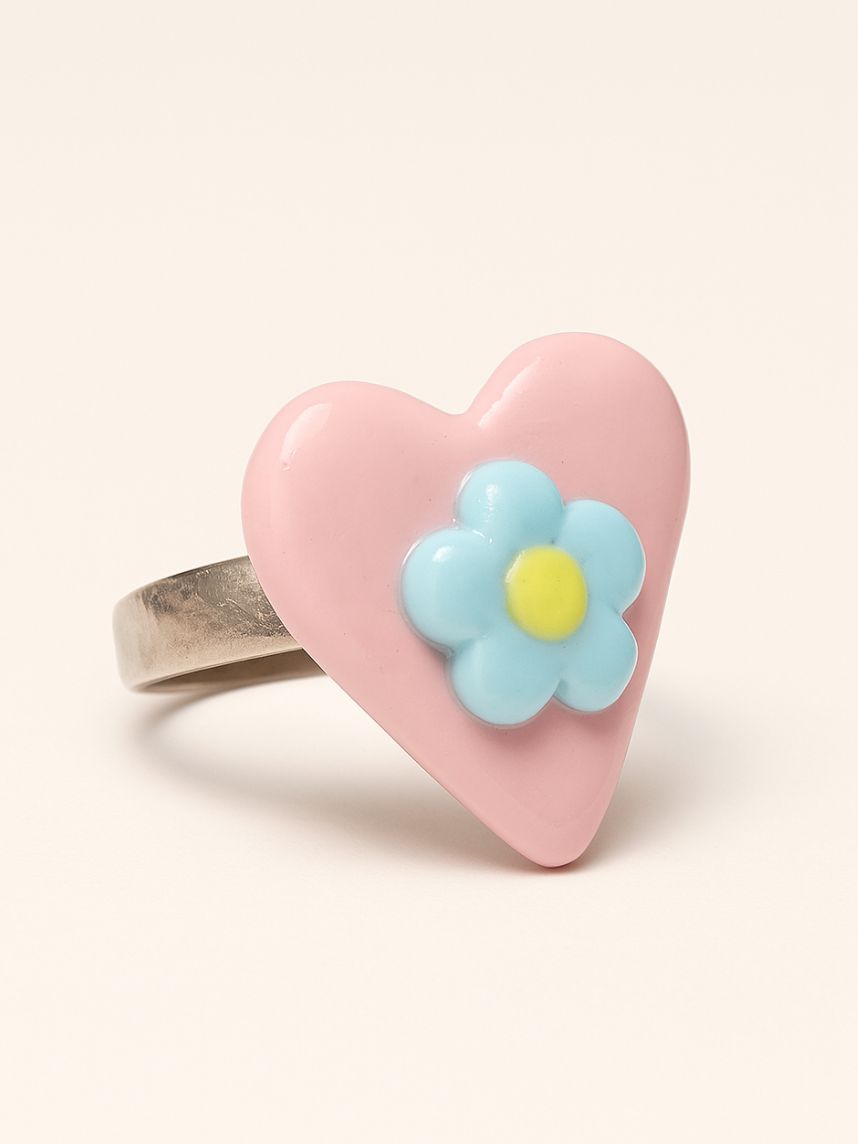Милое кольцо ручной работы в виде цветочка в сердце. Необычный подарок для себя или подруги!