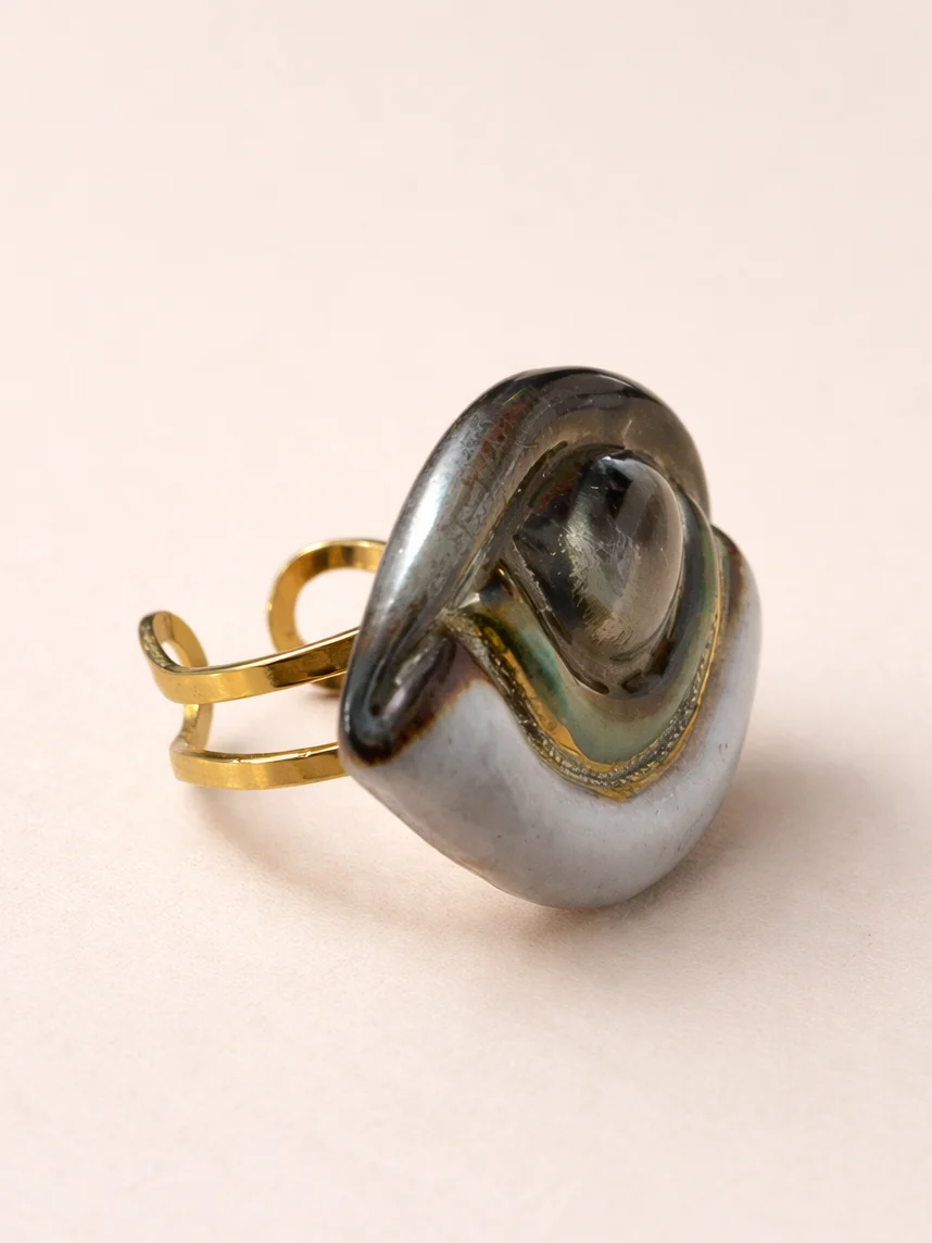 Кольцо ручной работы КерамЕлКа «Глаз зеленый с позолотой», керамика