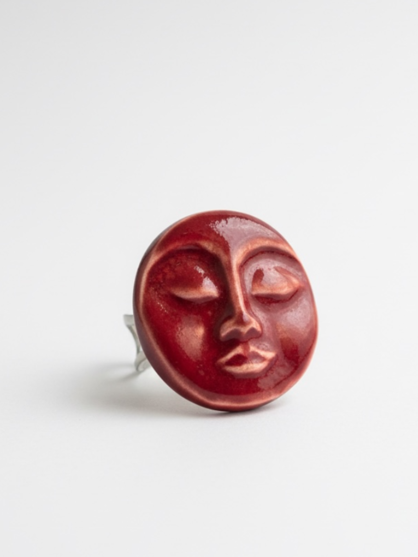 Кольцо ручной работы КерамЕлКа «Лицо», бордовое, керамика