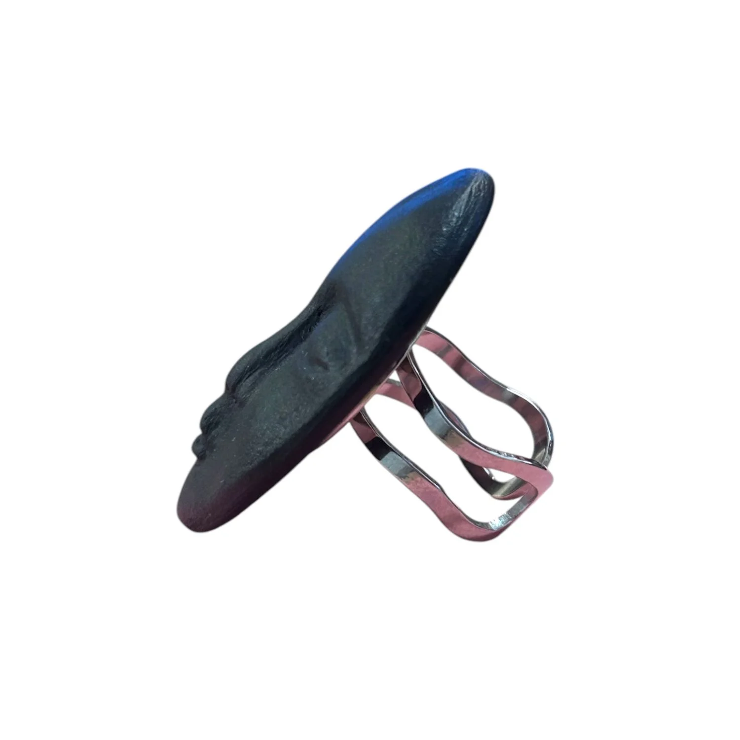 Необычное фарфоровое кольцо в виде лица чёрного матового цвета - станет отличным подарком и не оставят без внимания любительницу украшений!