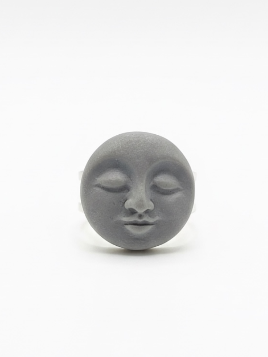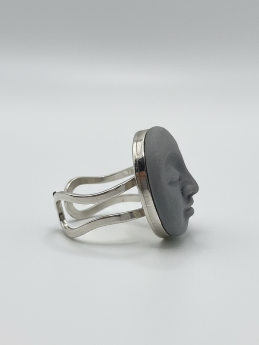 Кольцо ручной работы КерамЕлКа «Лицо малое», серое, керамика