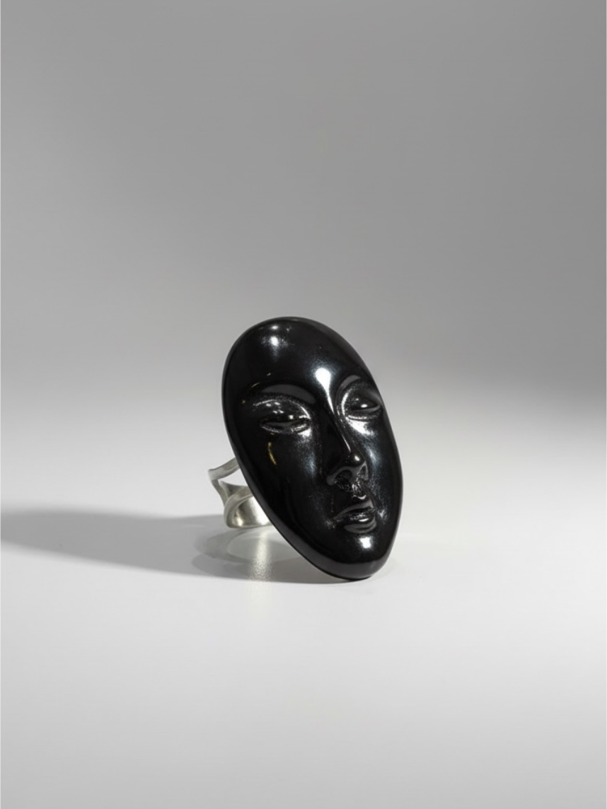 Необычное фарфоровое кольцо в виде лица черного цвета - станет отличным подарком и не оставят без внимания любительницу украшений!