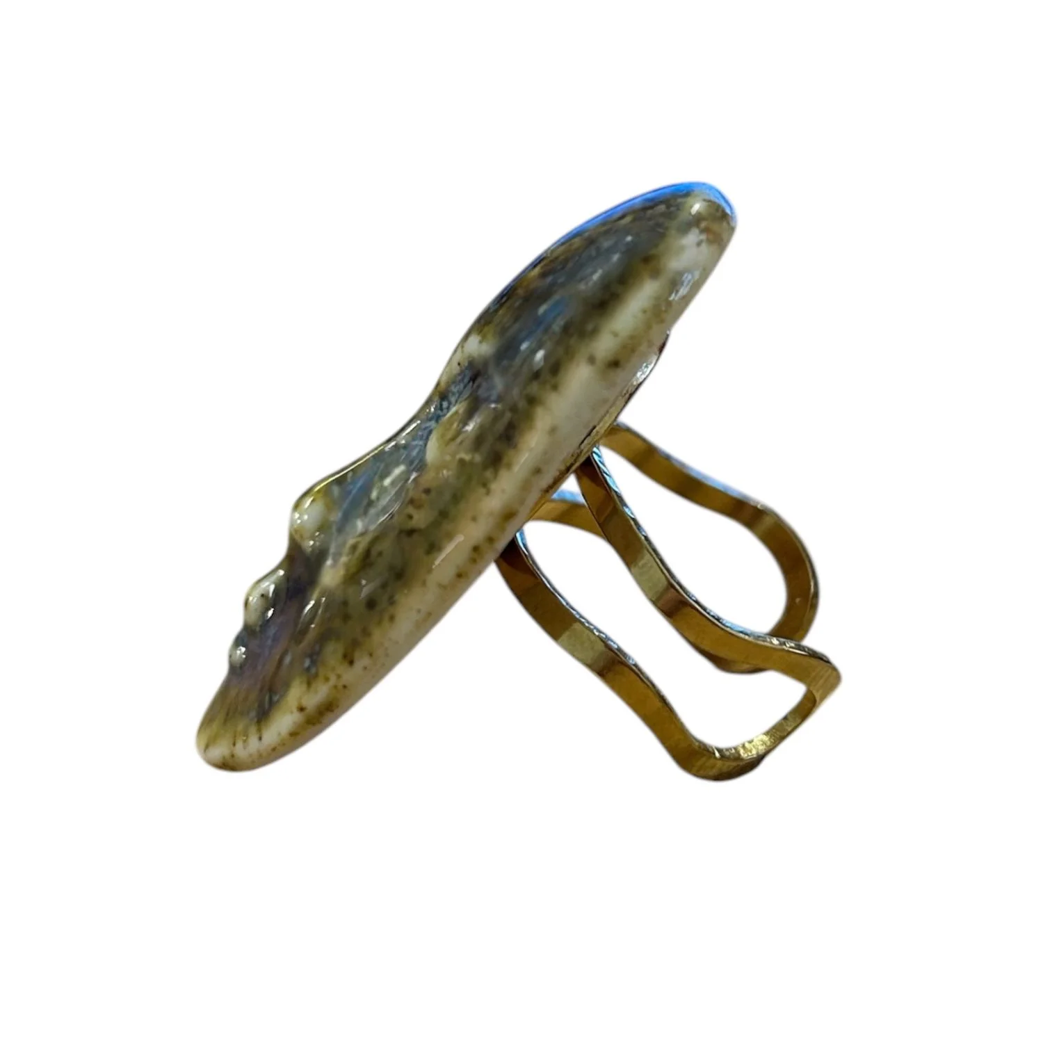 Кольцо ручной работы КерамЕлКа «Лицо овальное», коричневое, фарфор