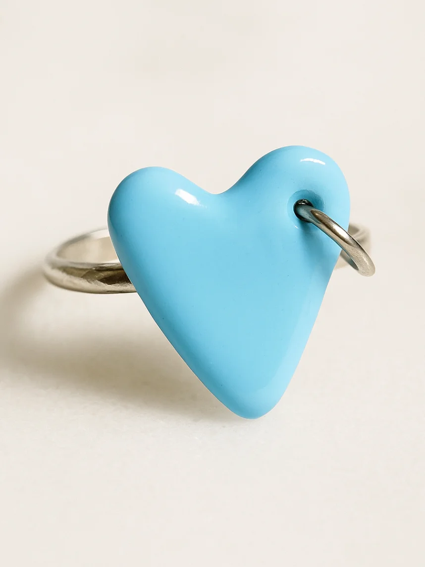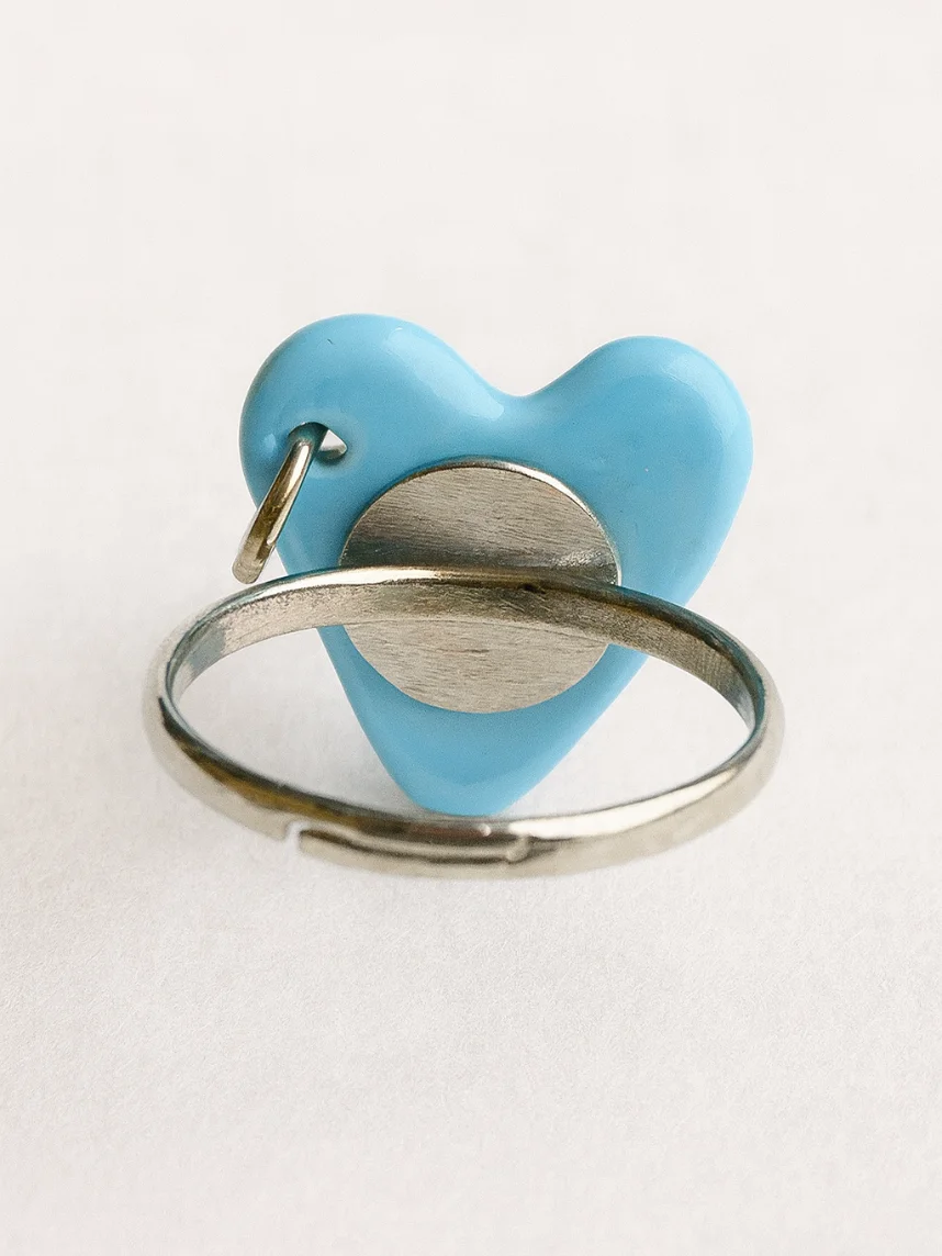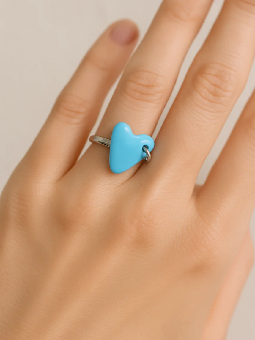 Милое кольцо ручной работы в виде сердечка с кольцом голубого цвета - необычный подарок для себя или подруги!