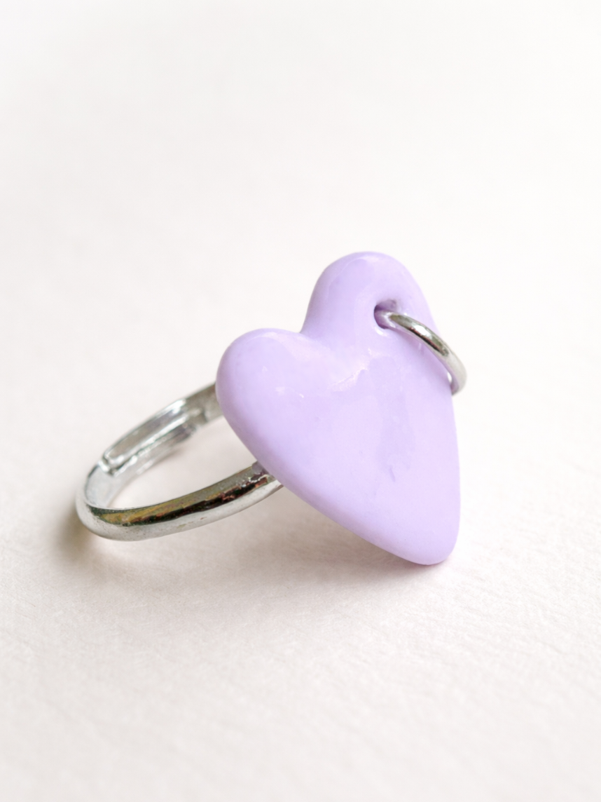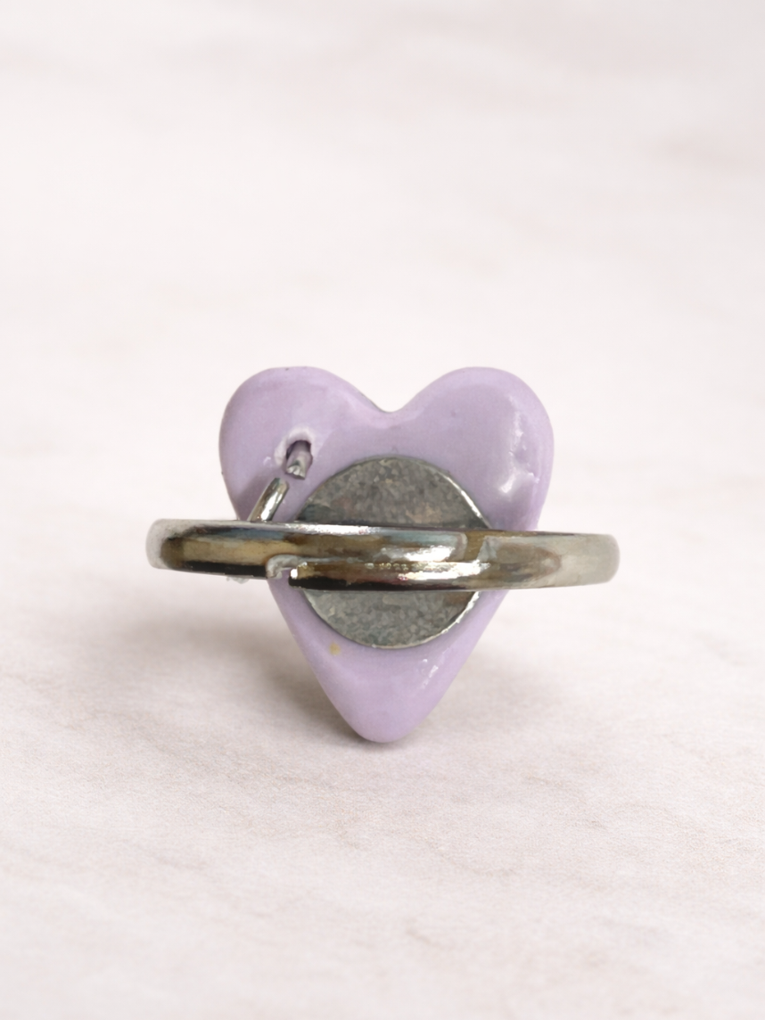 Милое кольцо ручной работы в виде сердечка с кольцом сиреневого цвета - необычный подарок для себя или подруги!