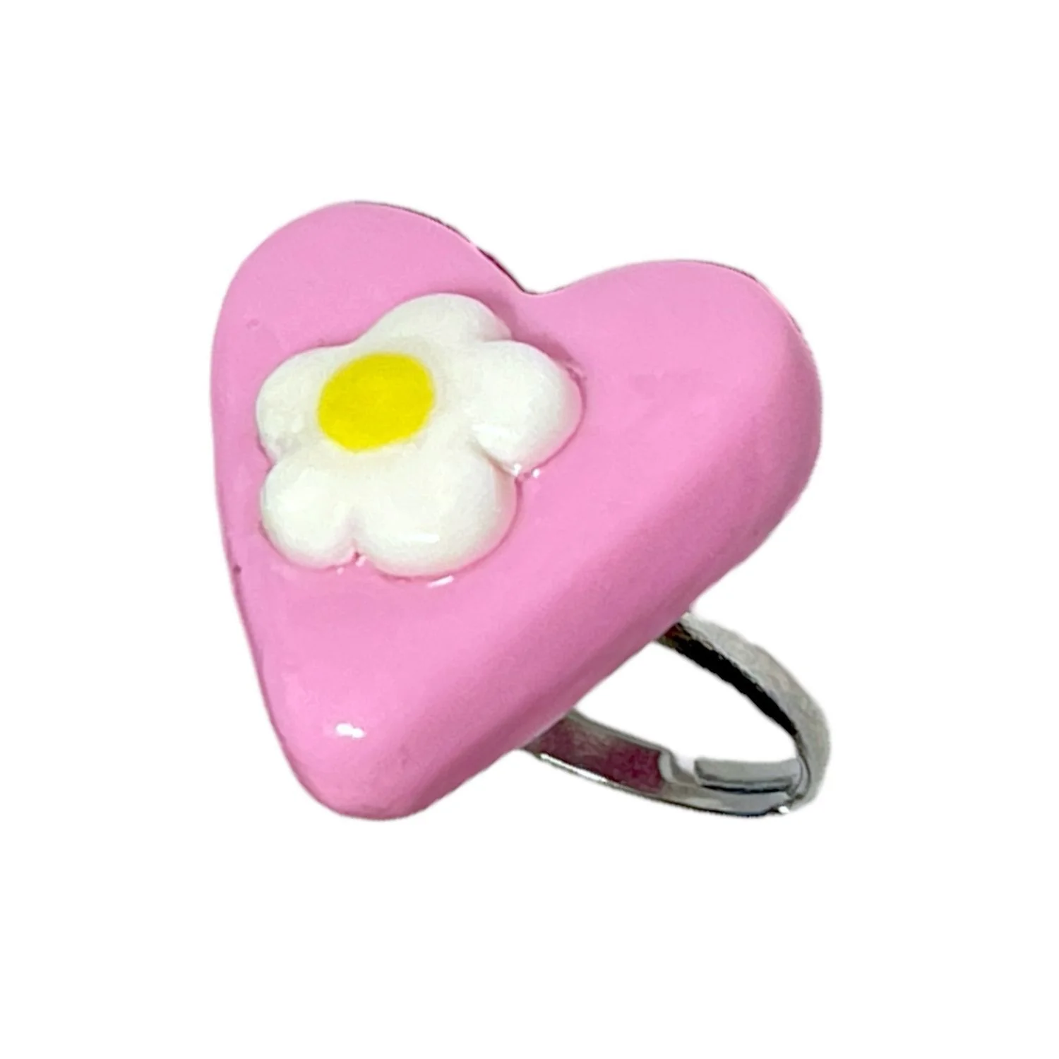 Кольцо ручной работы Радость Рядом Сердце с ромашкой, полимерная глина, незамкнутое
