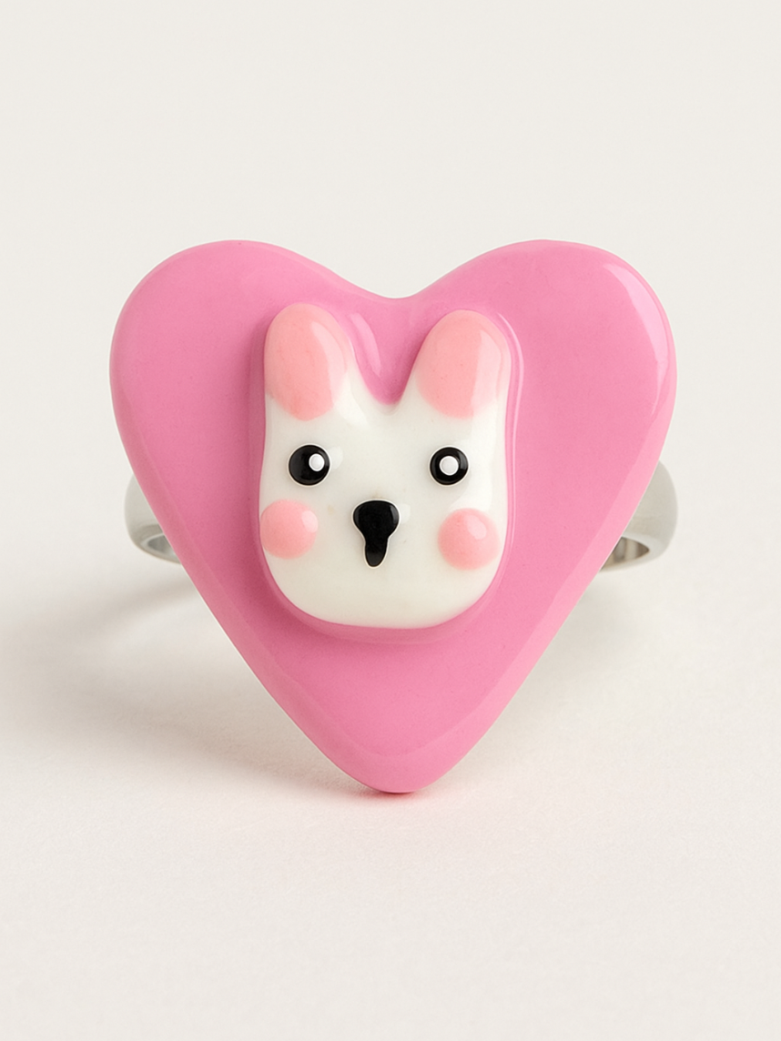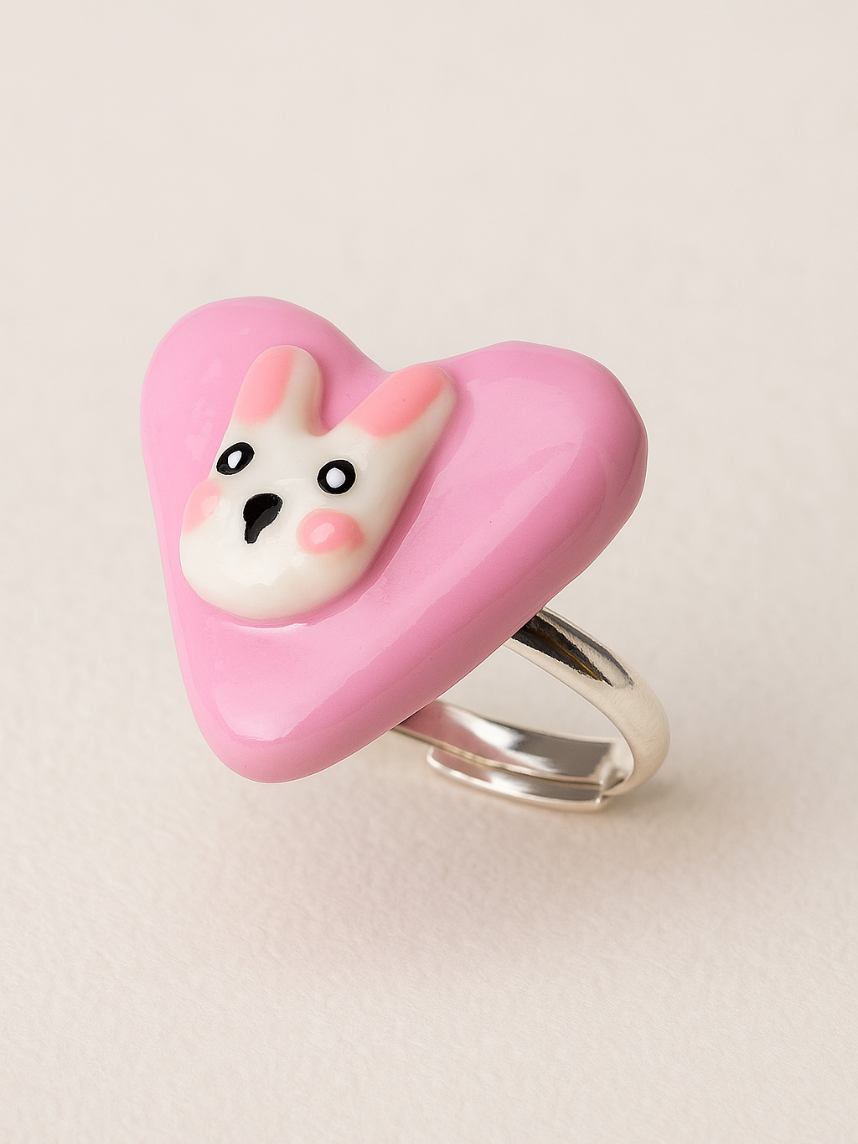 Милое кольцо ручной работы в форме сердца с зайкой - необычный подарок для себя или подруги!